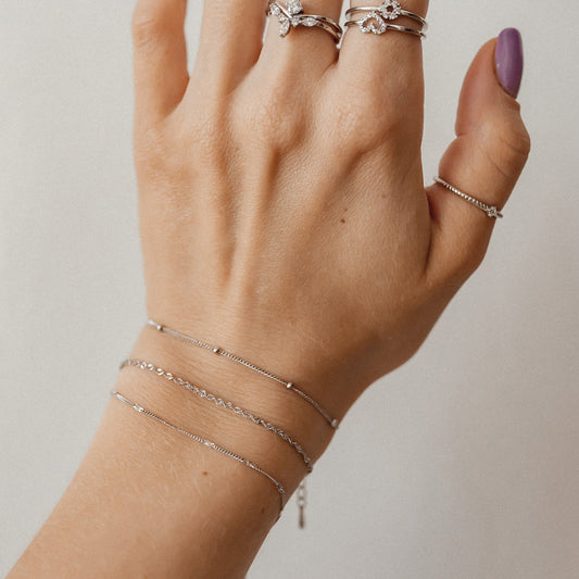 Delicate Layering Bracelets Set Sterling Silver