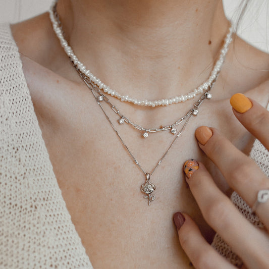 Delicate Layered Necklace Snake Chain Silver
