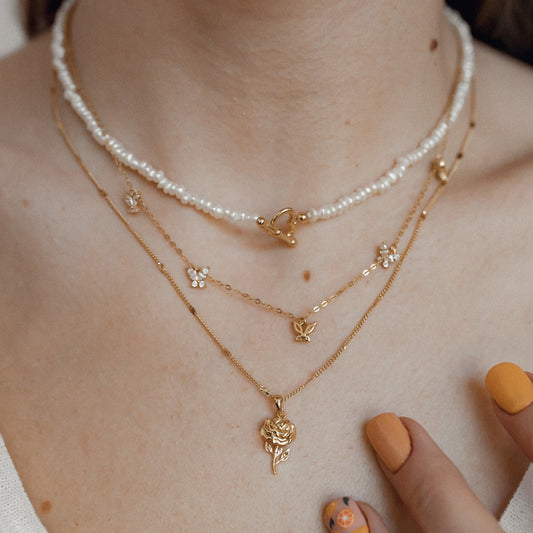 Rose Pendant Necklace Sterling Silver Gold