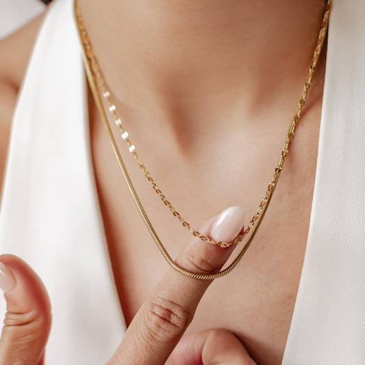 Rolo and Snake Chain Necklace Set