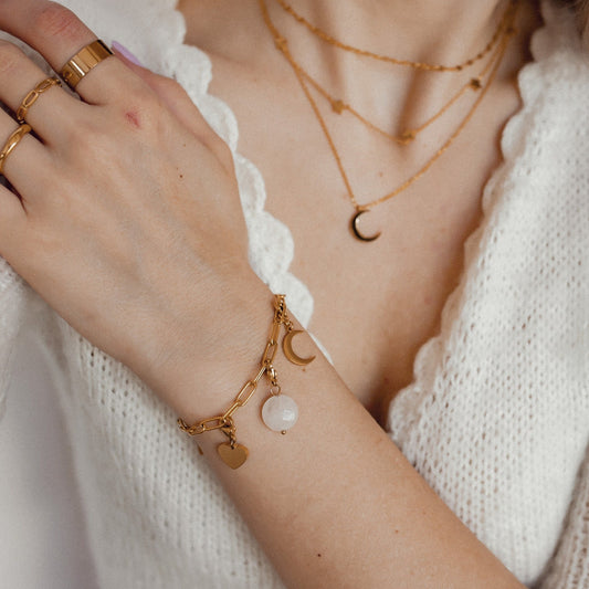 Lucky charms, glittering hearts and sweet details adorn our bracelets in gold, silver and rose gold. Subtle enough for everyday wear, our charm bracelets and chain bracelets will effortlessly take you from the office to the restaurant.