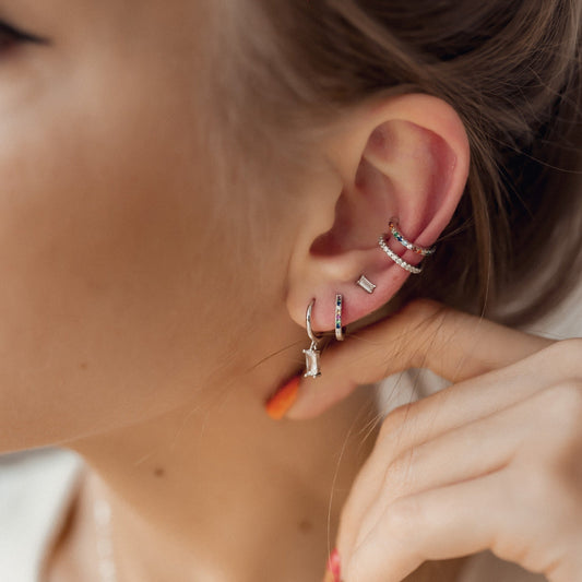 Baguette Ear Cuff Sterling Silver Gold