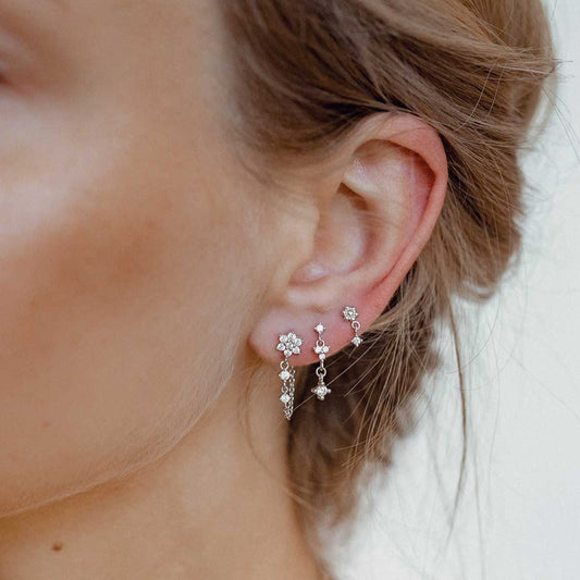 Hanging Bloom Stud Earrings Sterling Silver
