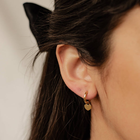 Heart Charm Hoop Earrings Sterling Silver Gold
