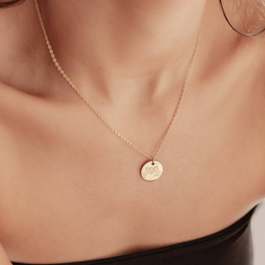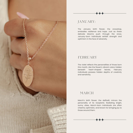 Oval Birth Flower Necklace