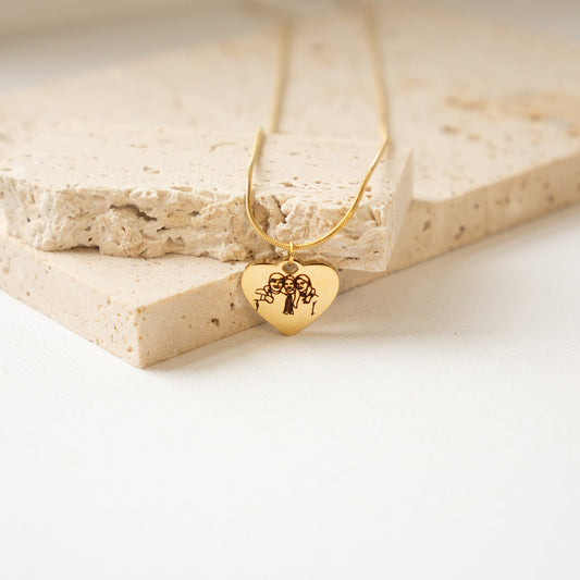 Engraved Family Portrait Necklace Waterproof