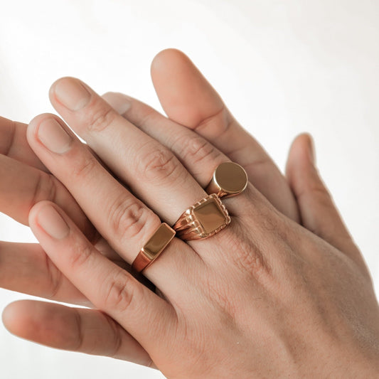 Engraved Square Signet Ring Men Stainless Steel