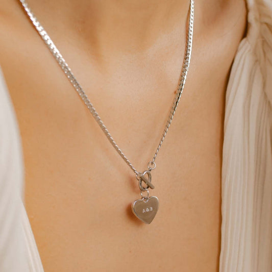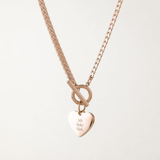 Heart Charm T-Bar Chain Necklace Rose Gold