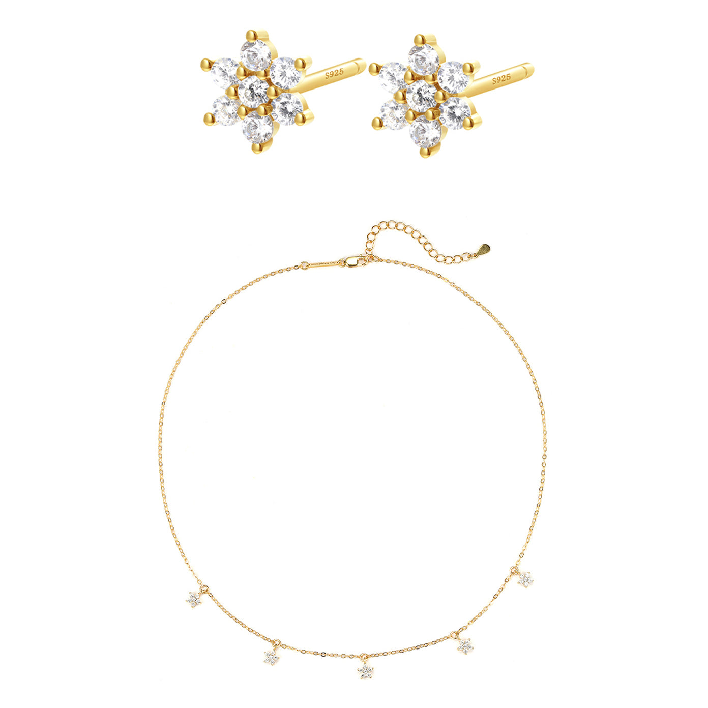 Experience the simplicity and elegance of our Bloom Jewelry Set. Each piece, a charm necklace and earrings, boasts a delicate bloom flower design made of high-quality sterling silver. Available in your choice of gold or silver, this set adds a touch of natural beauty to any outfit.