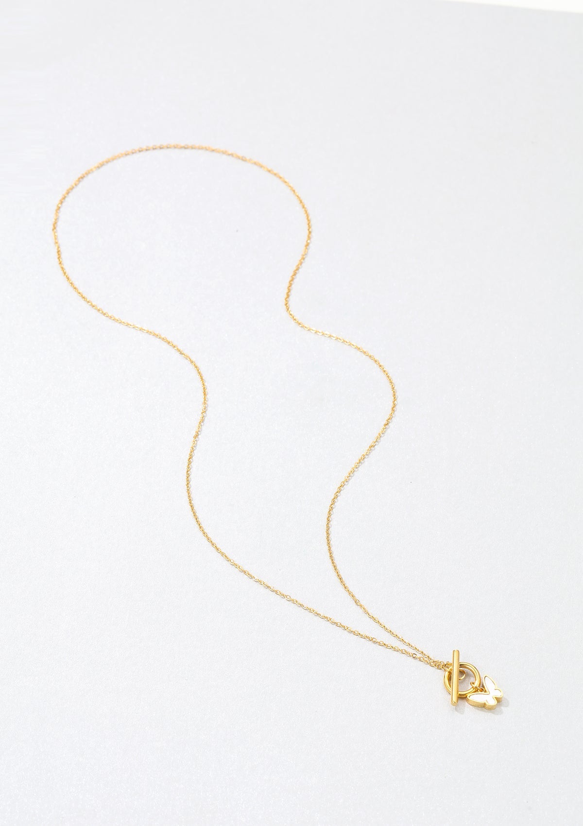 Butterfly Pendant T-Bar Necklace Gold