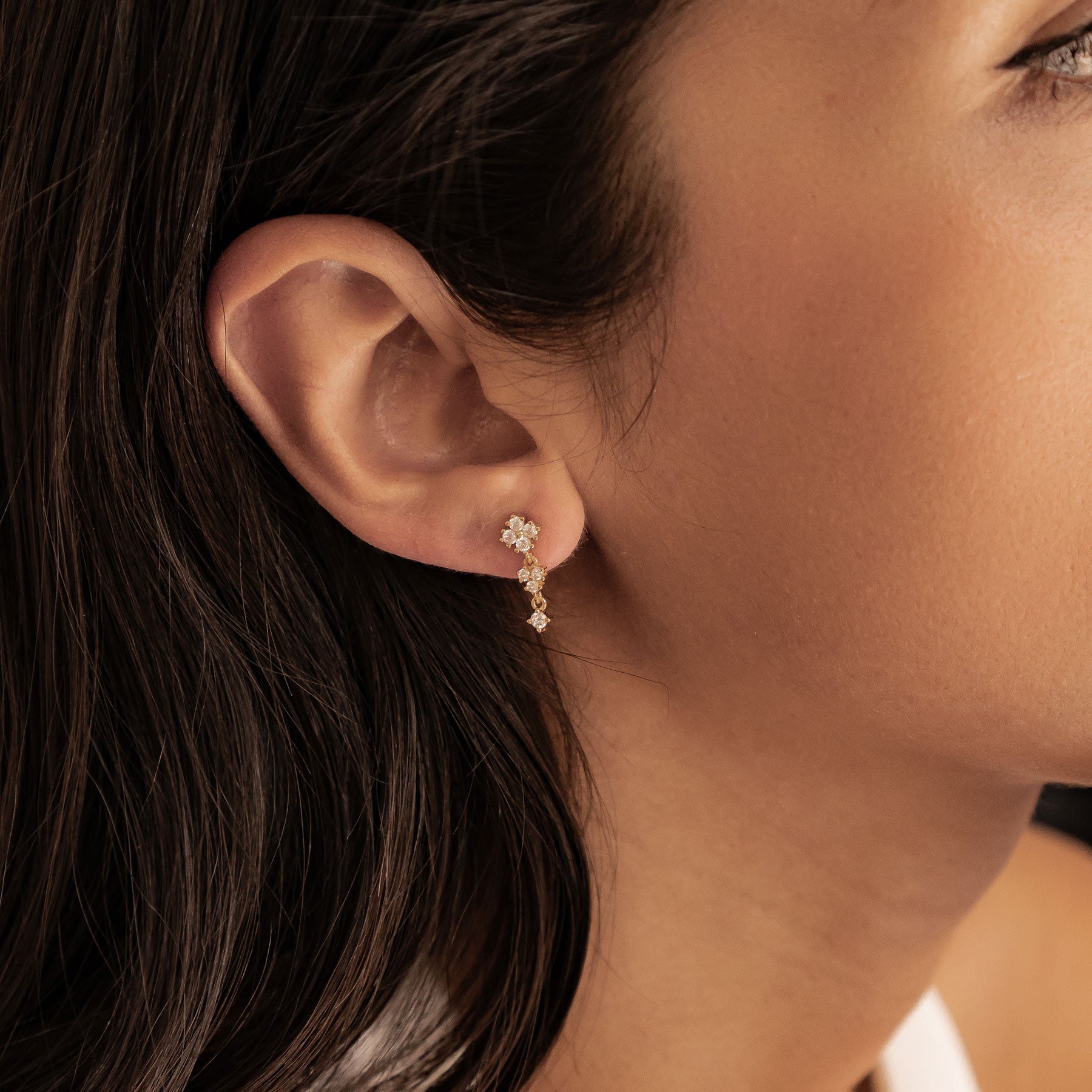 These drop earrings feature a cascading design of petite floral motifs, gently swinging with every move. Made from sterling silver and plated in gold, rose gold, or silver, they bring a playful yet elegant vibe to your jewelry rotation. Lightweight and versatile, they’re ideal for adding a floral finish to both everyday and evening outfits.
