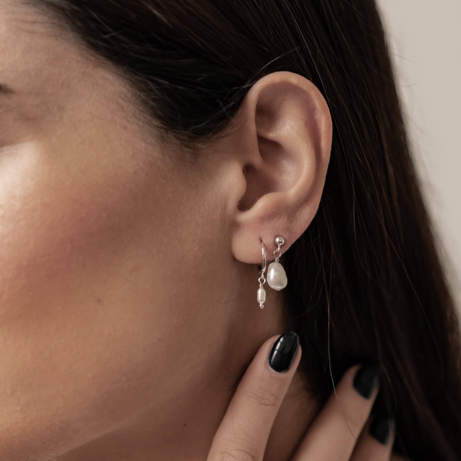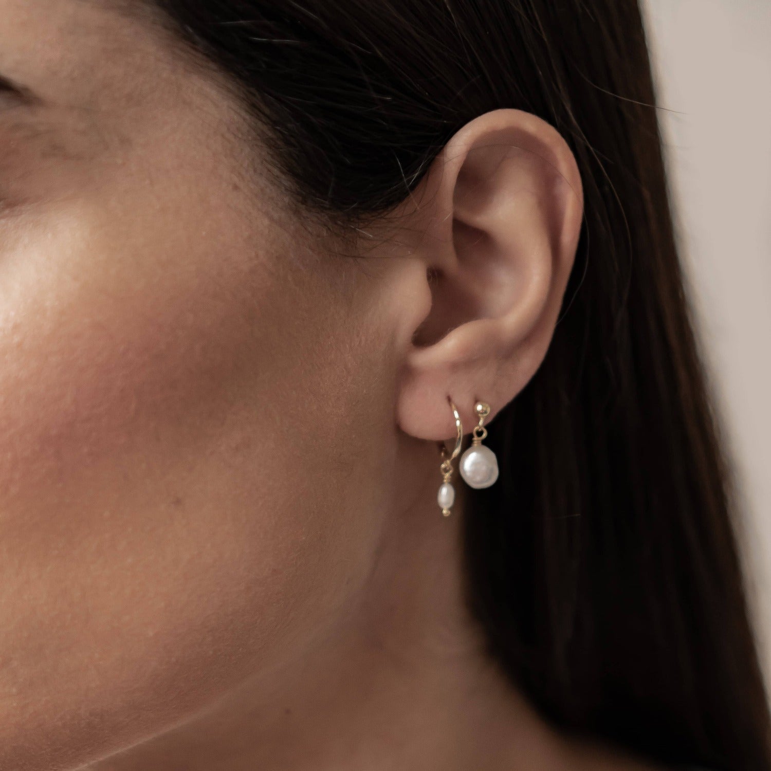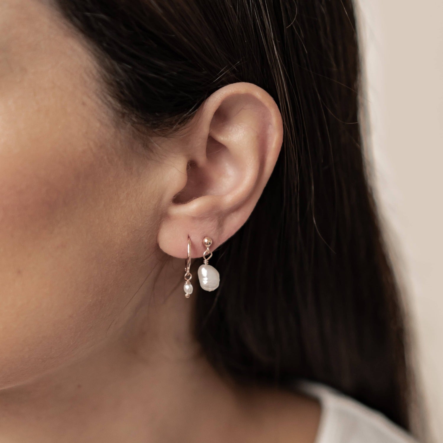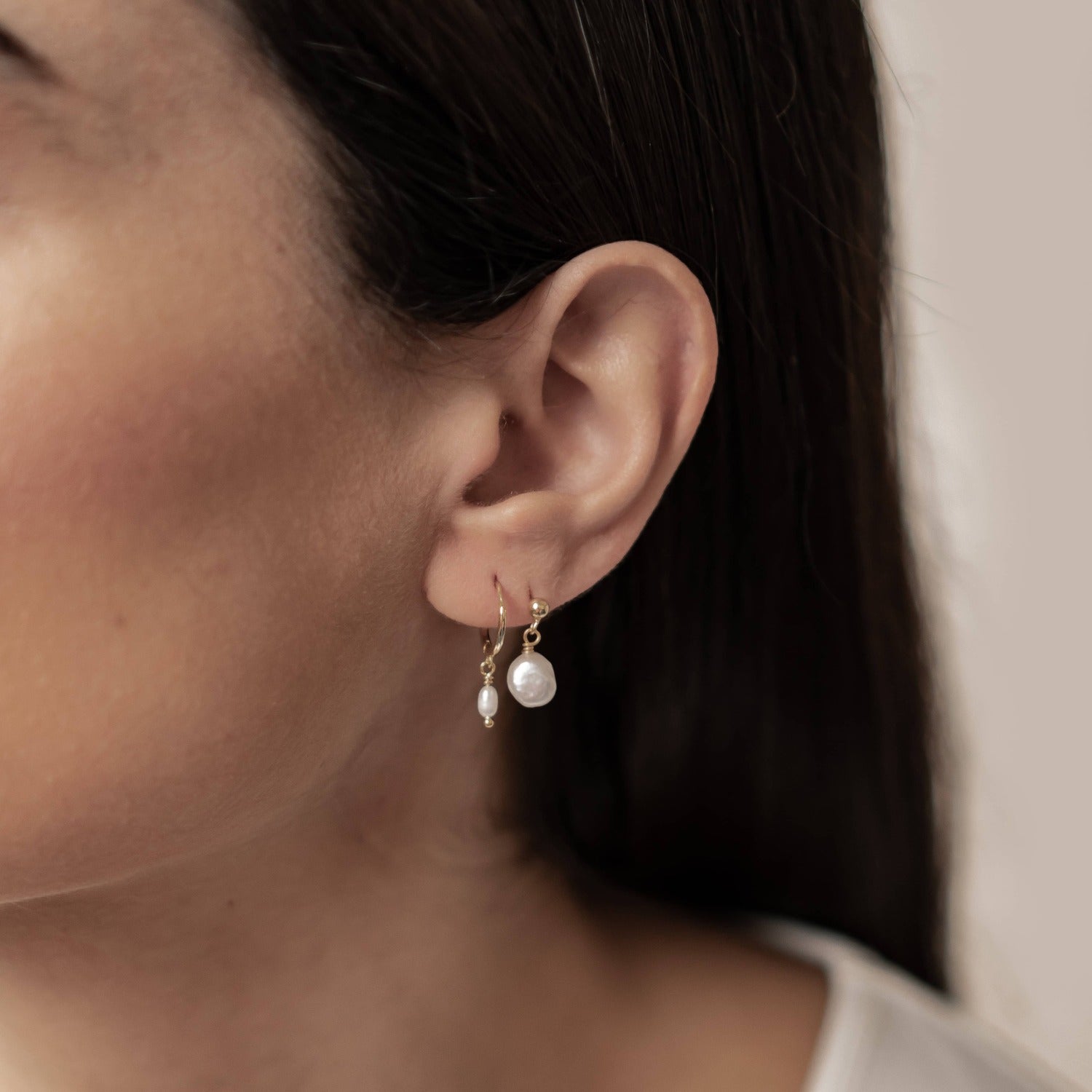 Classic Pearl Huggie and Stud Earring Set