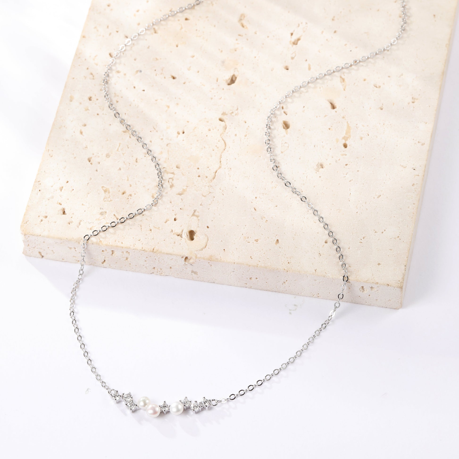 Be bold and daring with this captivating Cluster Pearl Pendant Necklace! Crafted from sterling silver, this beautiful piece features a cluster of 7 zirconias and 3 freshwater pearls - sure to turn heads. Available in both gold and silver, this necklace is the perfect accessory for adding a touch of glamour to any outfit. Also, check out Grace Pearl Necklace Sterling Silver Gold.