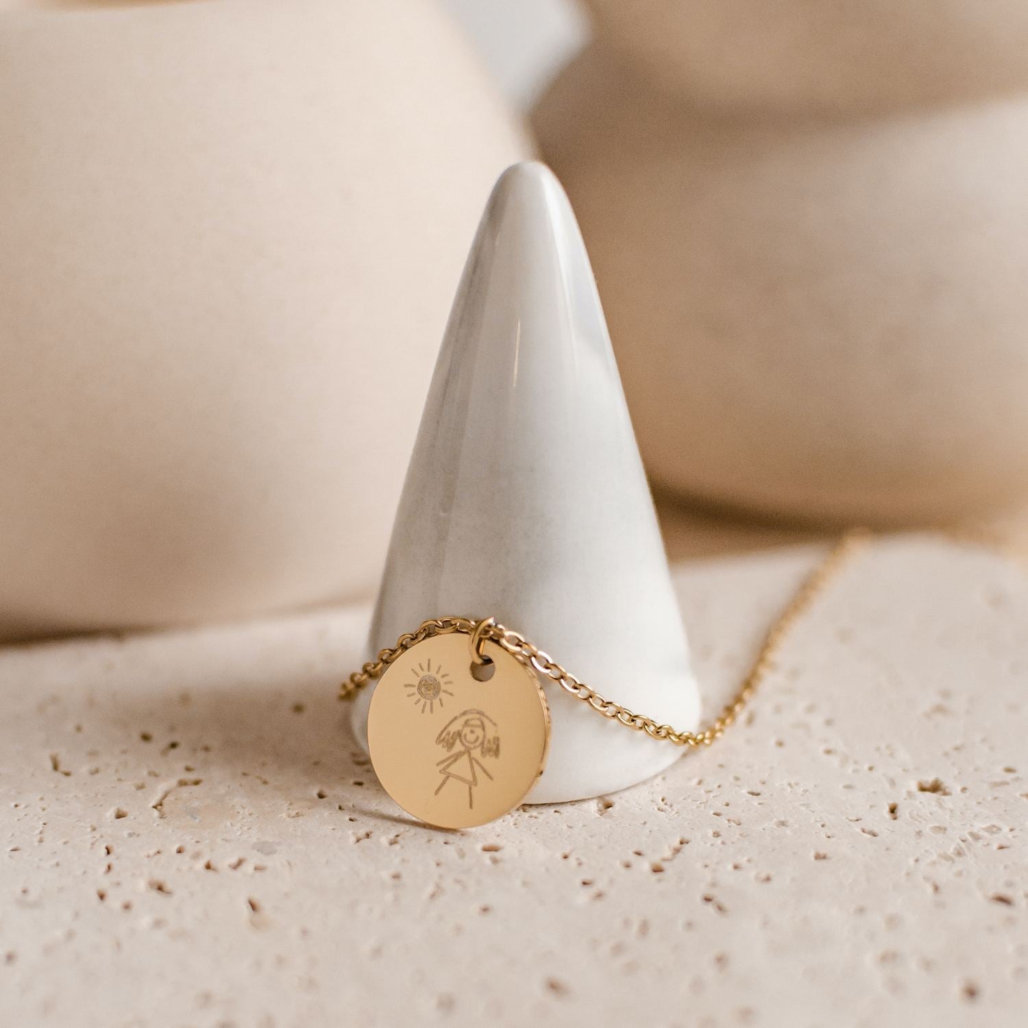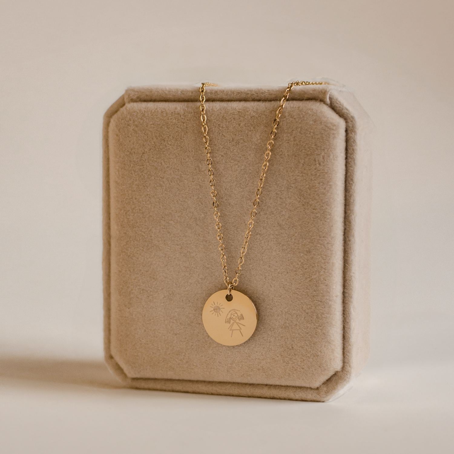 A personalized necklace you'll never want to part with! Customize the circle pendant necklace with your child's first drawing, artwork, or a sweet note. Immortalize a memory and create a special personalized gift - a stylish and sentimental piece to treasure forever.