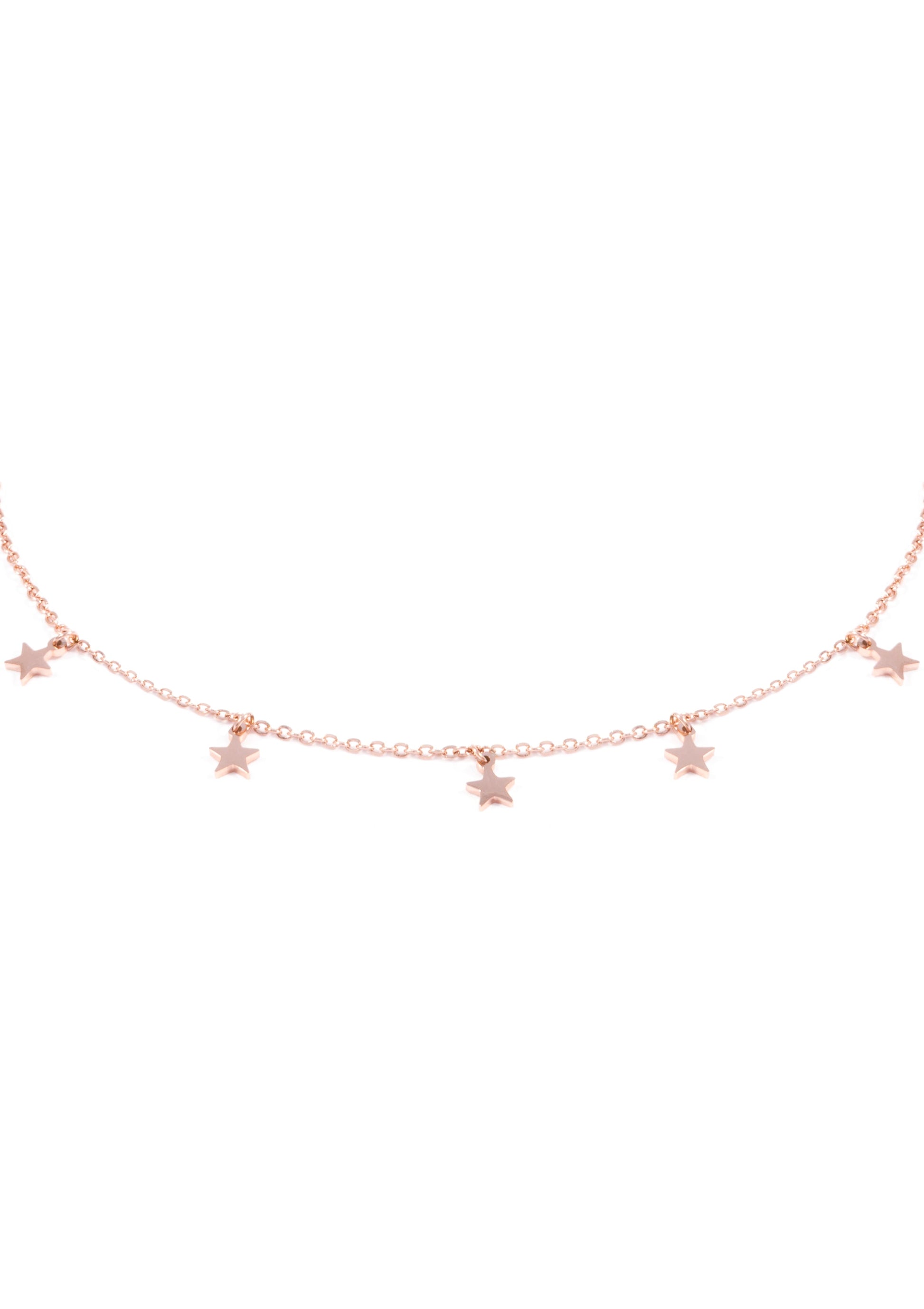 Featuring seven rose gold star pendants on a delicate rose gold chain necklace, this choker is a classic piece of jewellery that will never go out of style. With an adjustable length at the back it is also able to be worn high or low, depending on your outfit and preference. Also great for layering with multiple delicate chain necklaces for a relaxed, boho look. Also check out Star Delicate Necklace Gold and Star Delicate Necklace Silver.
