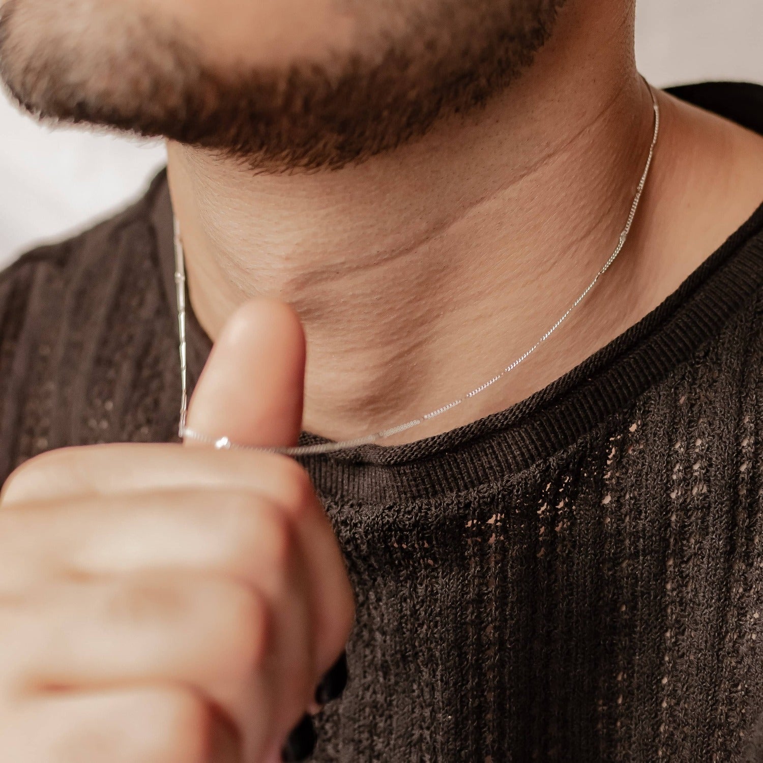 This is a fine, 925 sterling silver chain which features tiny rectangular metal charms engraved with a starburst pattern attached along its length, at regular intervals. It fastens at the center back with a round spring clasp, where it also has a short extension chain (made from regular-shaped chain links), making sure you find the fit that’s right for you. An elegant and durable design that is ideal for wearing together with pendants, and on a daily basis. Also check out Fine Singapore Chain Sterling Silver.