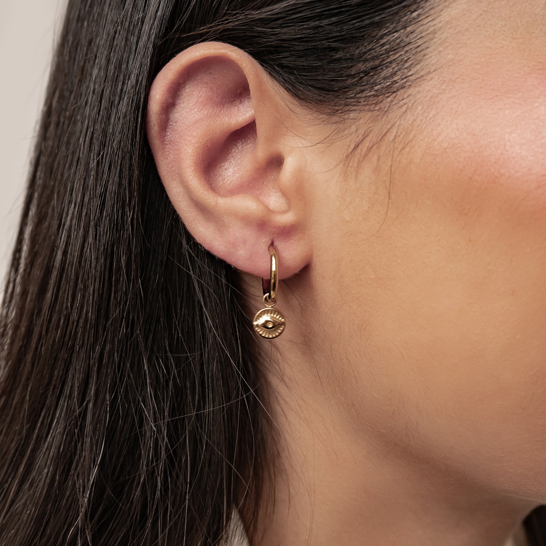 The Evil Eye Charm Hoop Earrings Waterproof feature sleek stainless steel hoops finished with a minimalist evil eye charm for a modern protective touch. Designed for everyday wear, they’re waterproof, durable, and made to keep their shine all day long. Available in gold, rose gold, and silver, they’re perfect for stacking or wearing solo for effortless style