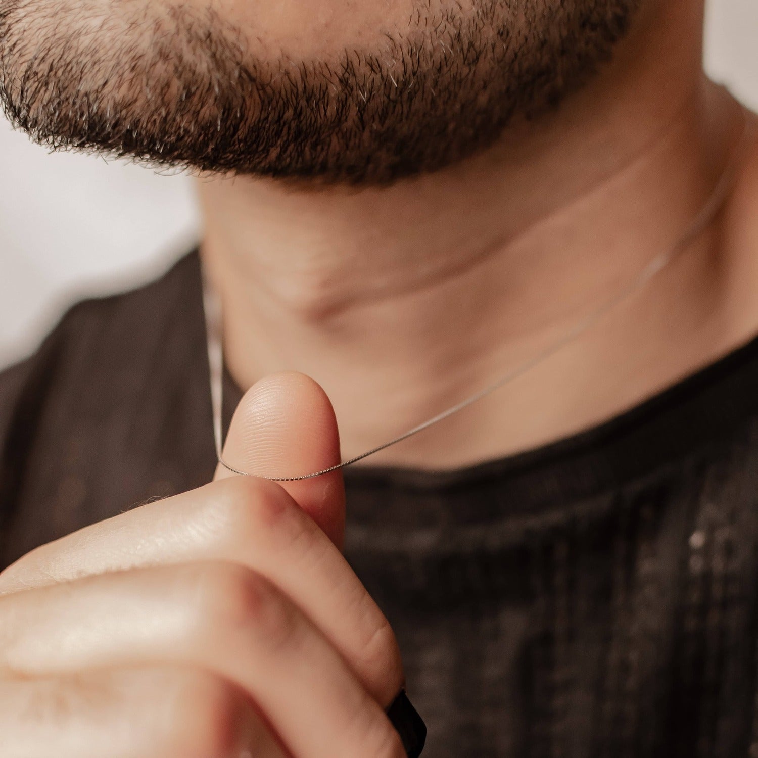 This sterling silver necklace consists of a fine ‘box’ chain, made from small square links all connected to make a continuous smooth chain. It fastens at the center back with a round spring clasp, where it also has a short extension chain made from larger, regular round chain links. Strong, durable, and can be lengthened depending on your preference and outfit. A perfect chain to pair with pendants. Also check out Fine Textured Chain Necklace Sterling Silver.