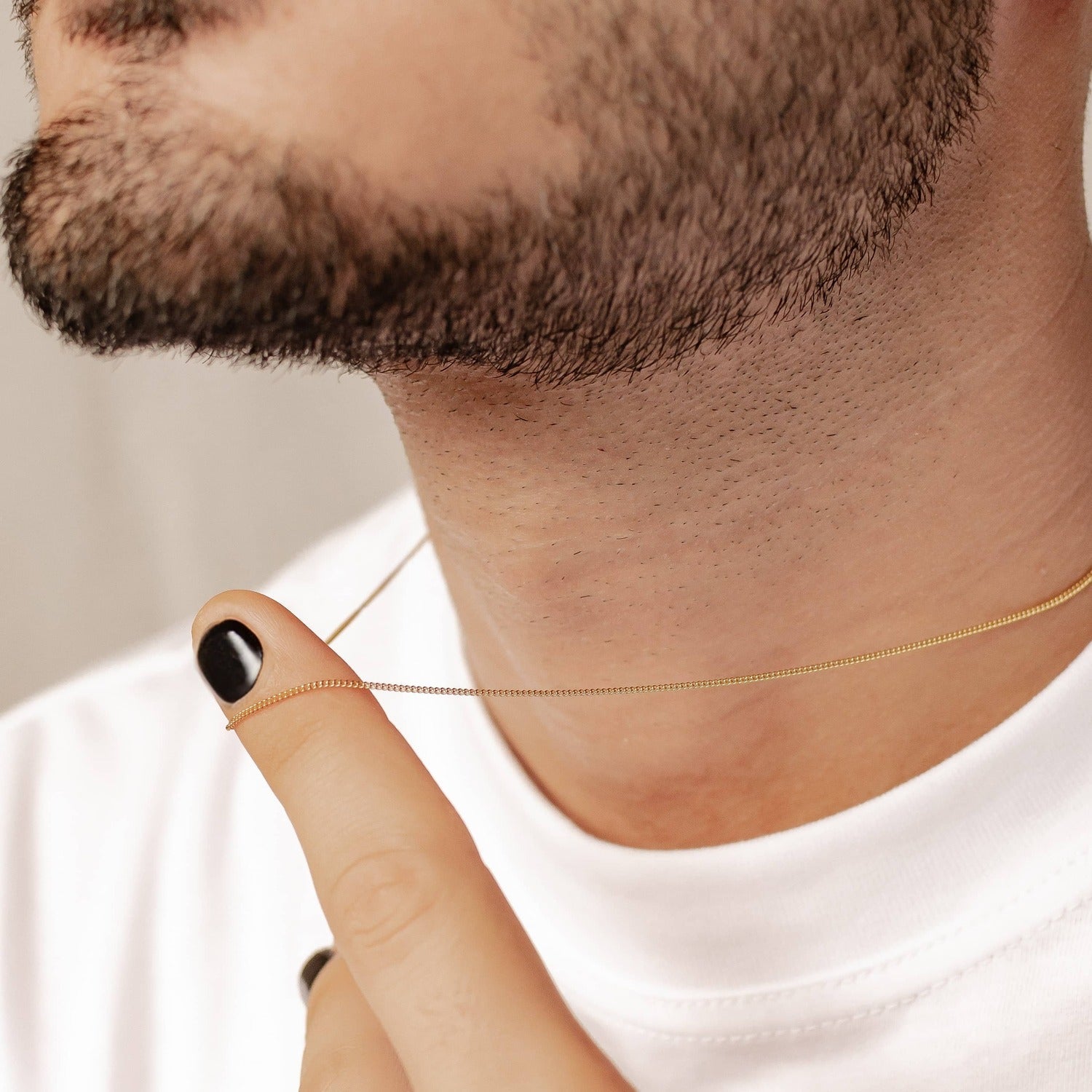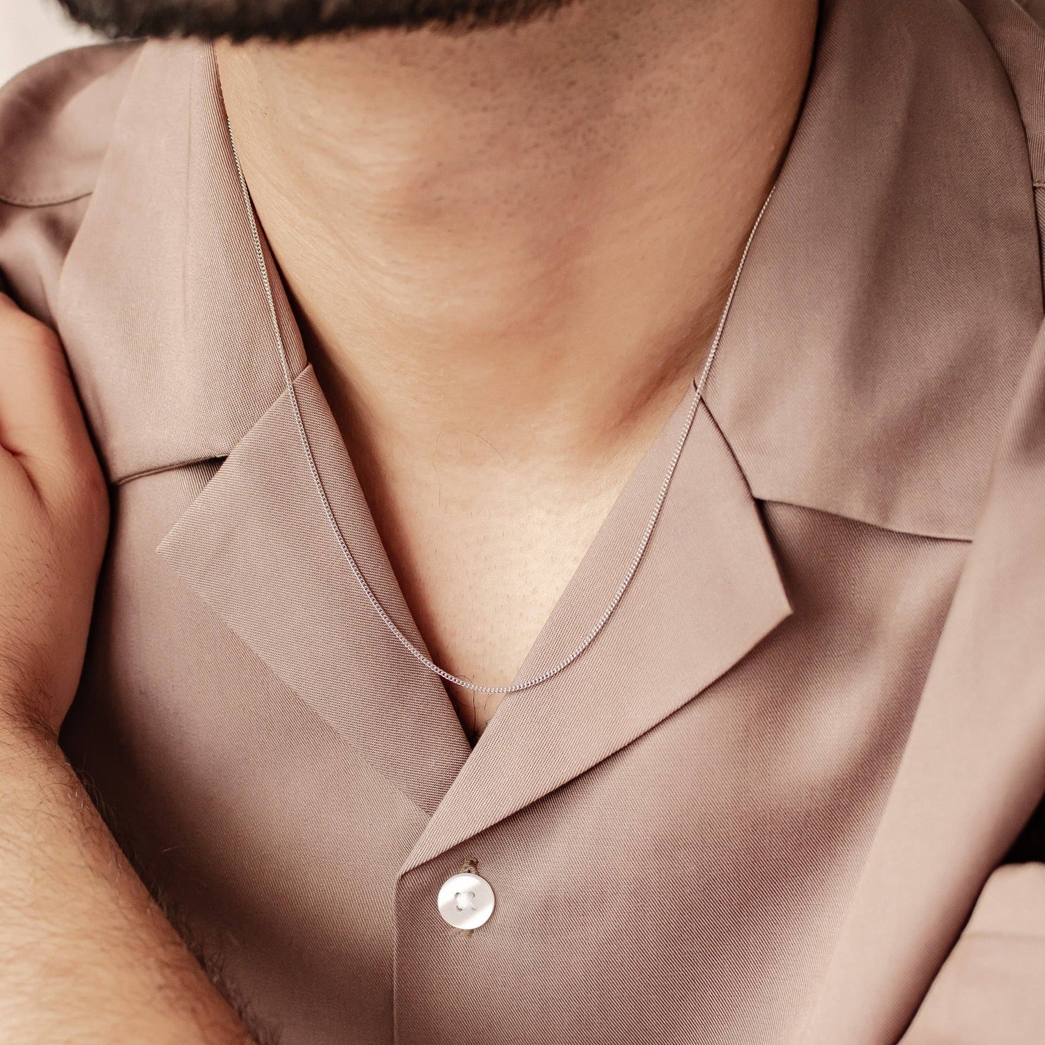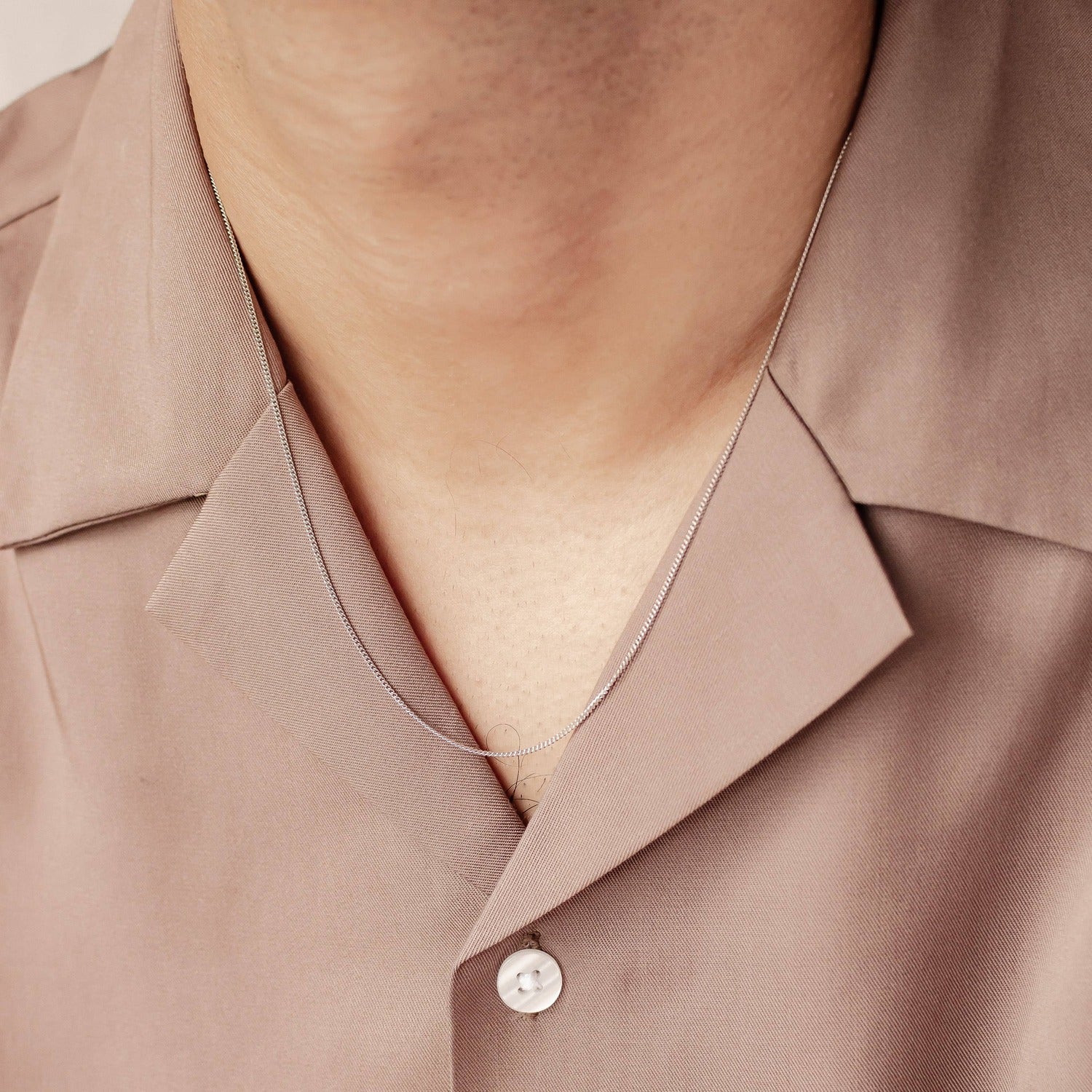 This is a fine chain necklace made from 925 sterling silver which features tightly interlocking links to create a ribbed, or textured surface. A round spring clasp fastens it at the center back, along with a short extension chain, which allows you to find your ideal length. A durable and timeless design that will pair well with pendants of all sizes.
