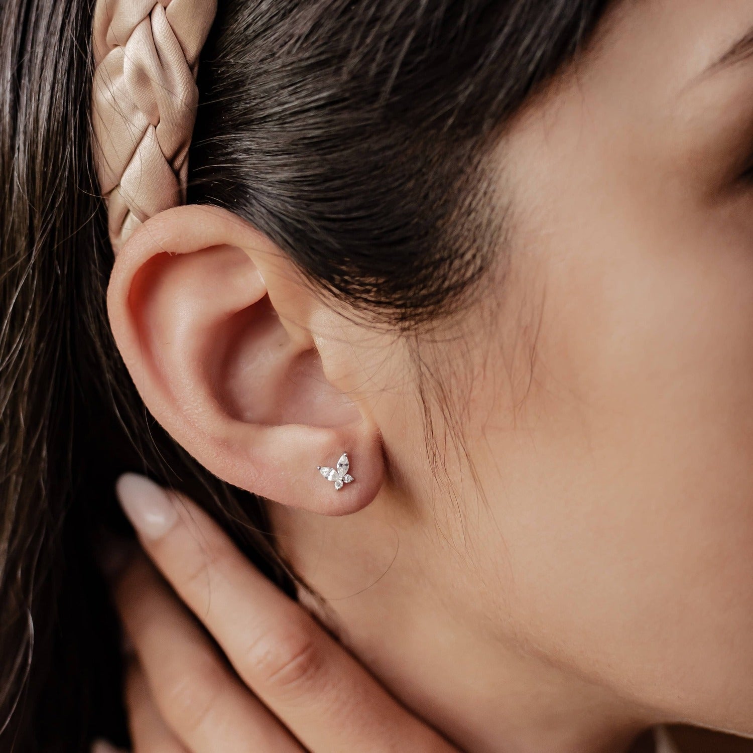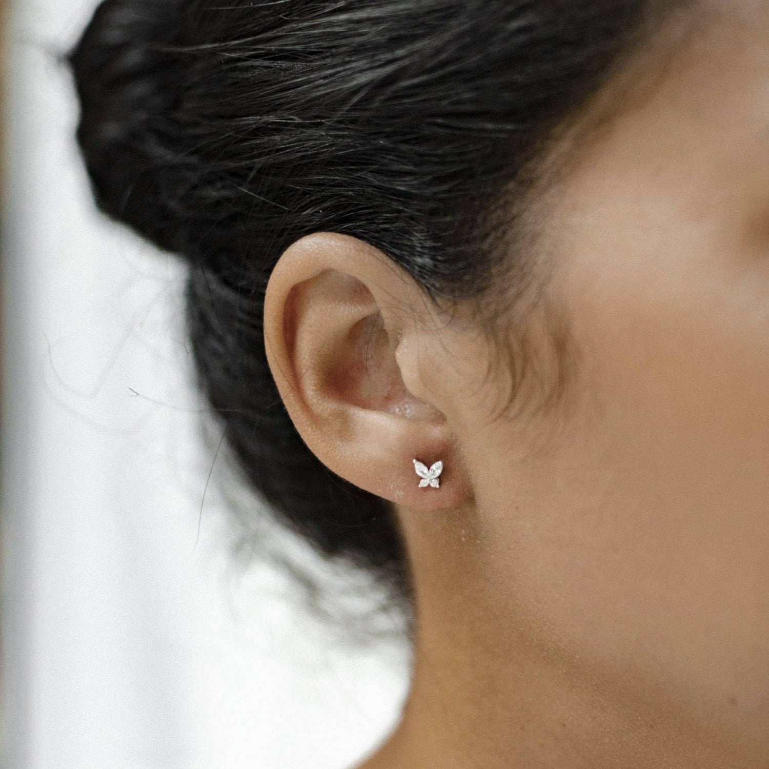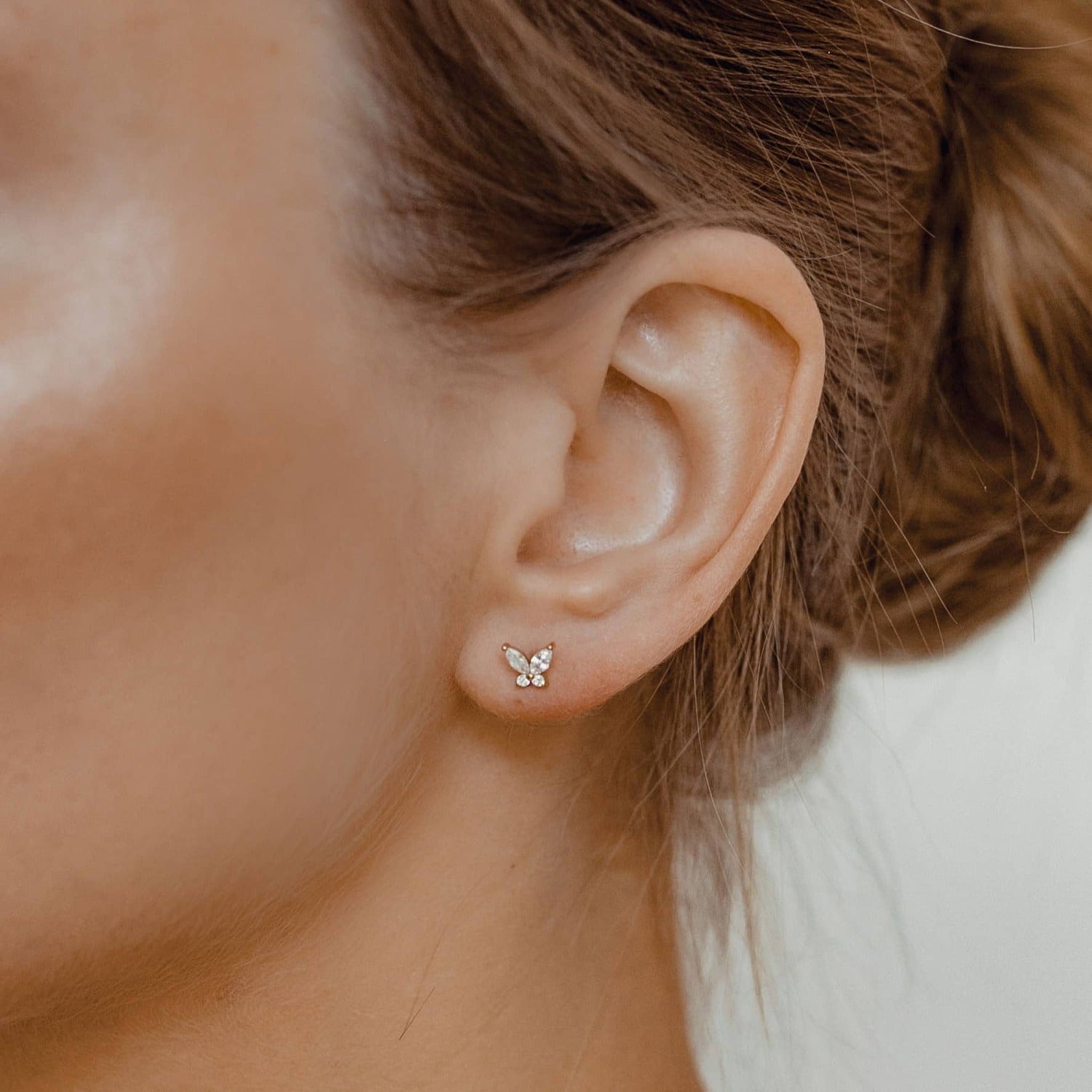 This elegant gemstone butterfly jewelry set consists of a necklace, earrings, and bracelet. Each piece showcases a beautiful butterfly design adorned with sparkling zirconia stones, all crafted from high-quality sterling silver. Choose between gold or silver for a glamorous and versatile addition to any outfit.