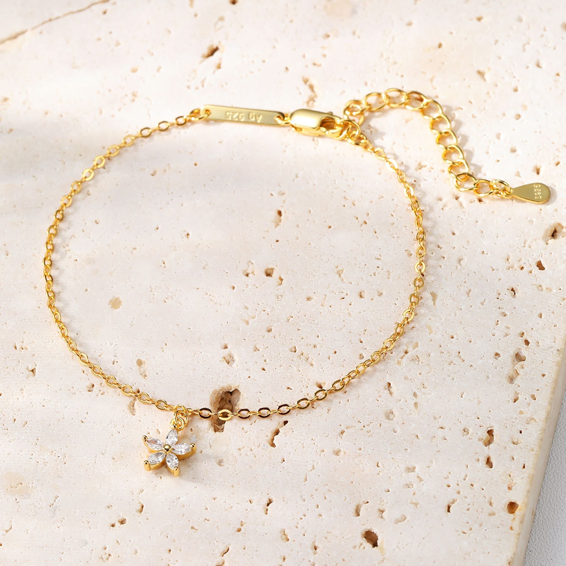 Add some flower power to your wrist with our Gemstone Daisy Chain Bracelet! Made of sterling silver, this bracelet features a beautiful zirconia daisy charm in the middle of the chain. Available in both gold and silver, it's the perfect accessory for any outfit. Also, check out Gemstone Daisy Chain Necklace Sterling Silver Gold.