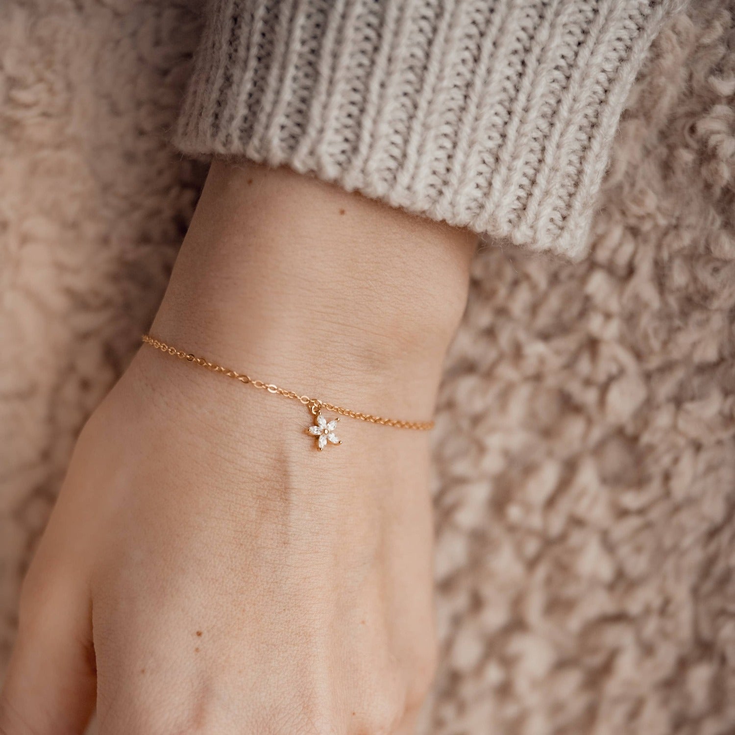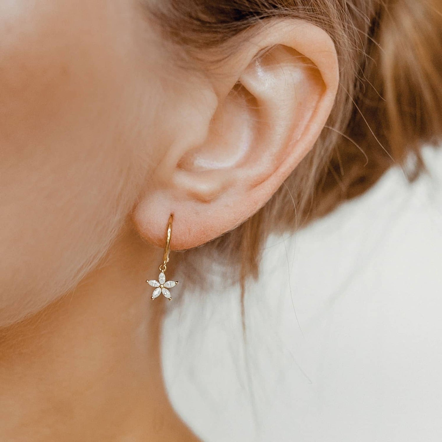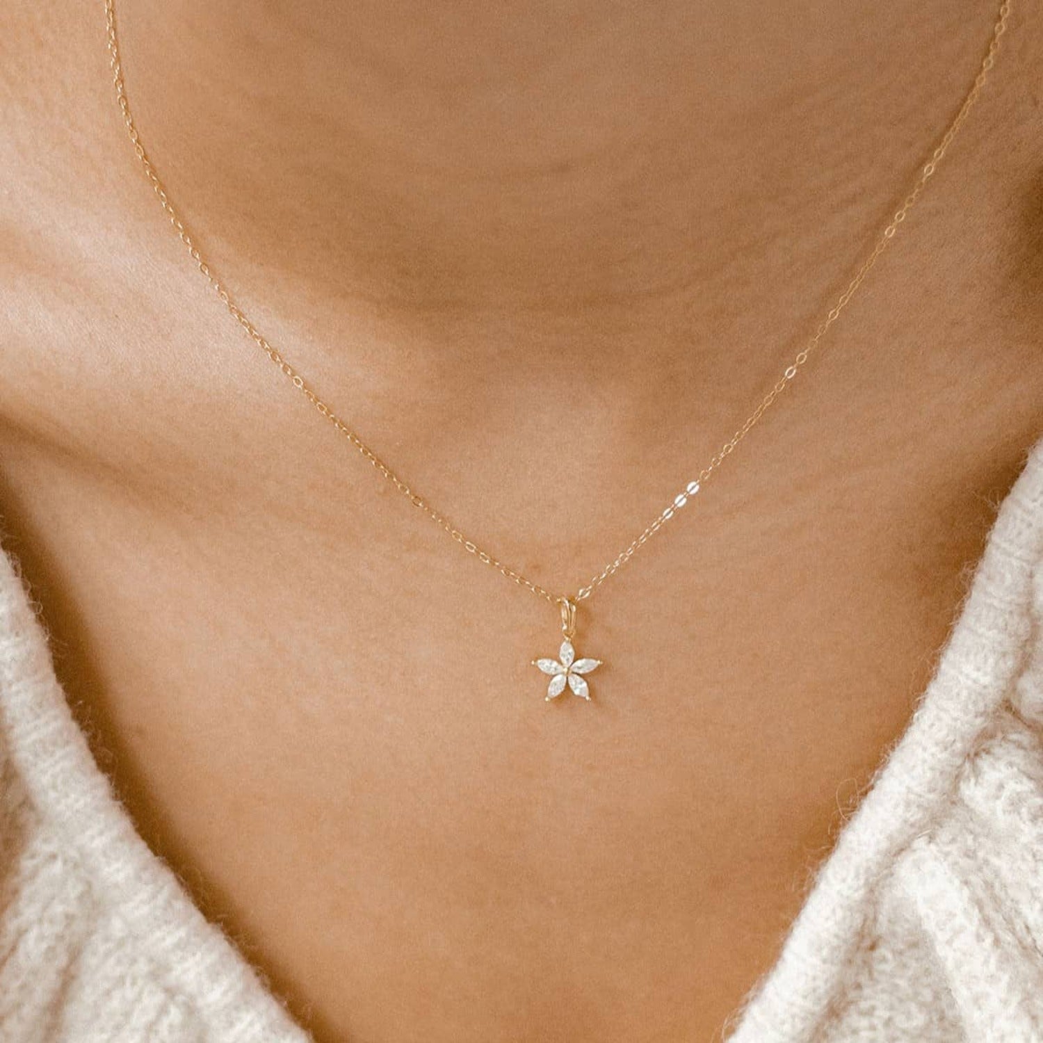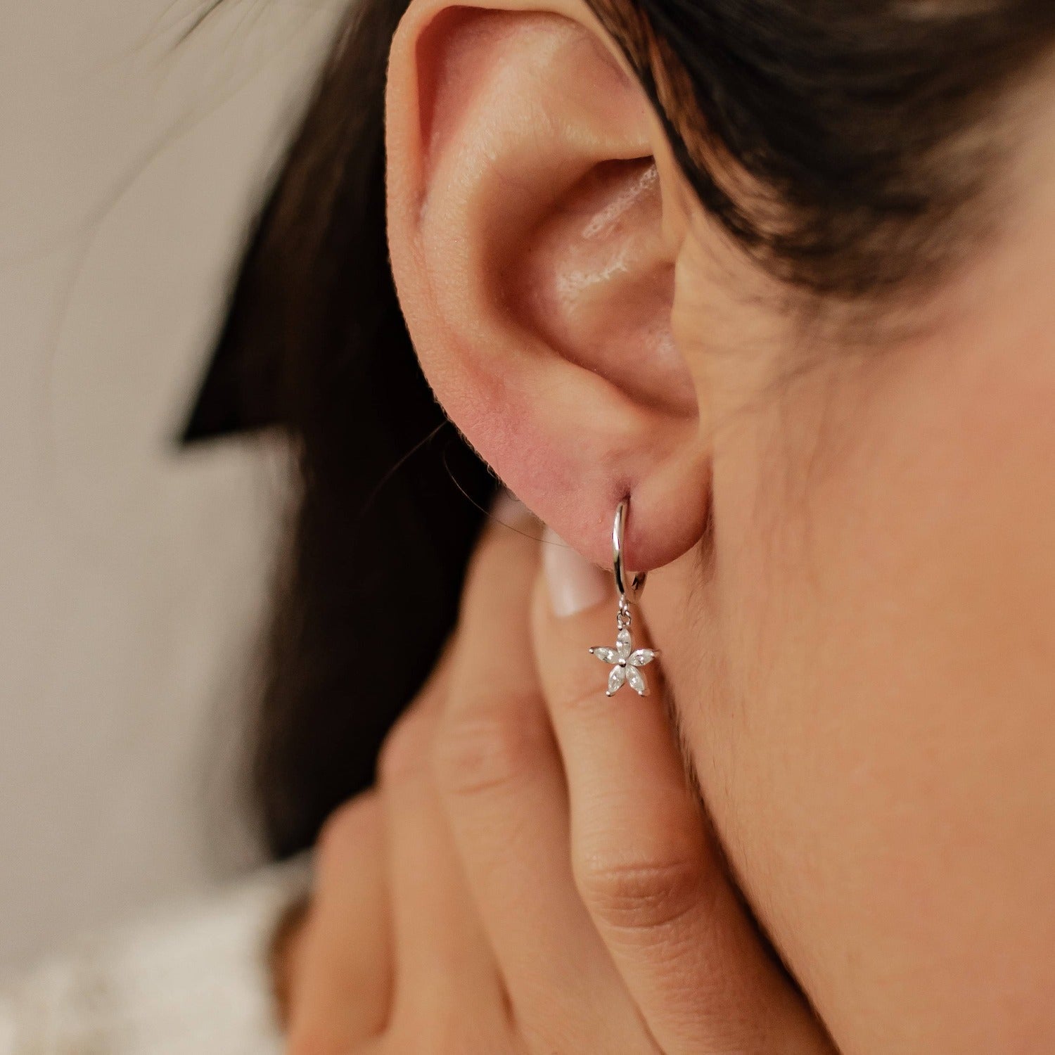 Elevate any outfit with our elegant Gemstone Daisy Jewelry Set. Made of high-quality sterling silver, the set includes a delicate necklace, matching huggie earrings, and a bracelet featuring a charming daisy with 5 zirconia leaves. Available in both gold and silver, this set is the perfect addition to any jewelry collection.