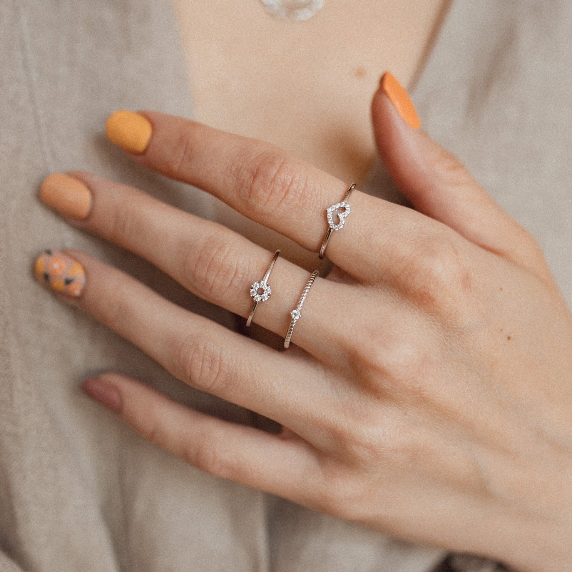 This is a delicate ring made from sterling silver which features a single, tiny zirconia stone set into the front edge of a thin band that imitates a length of twisted rope. A unique, yet timeless, and extremely versatile piece that will suit any outfit, and any occasion. Available in US size 7. Also check out Gemstone Fireworks Ring Sterling Silver.