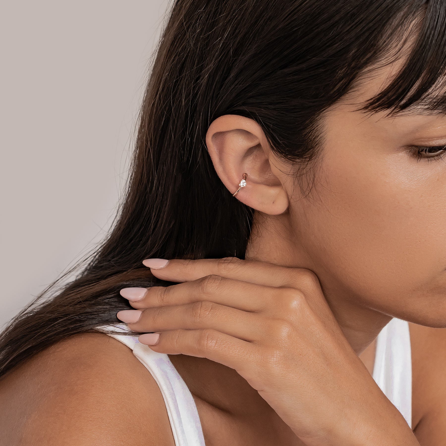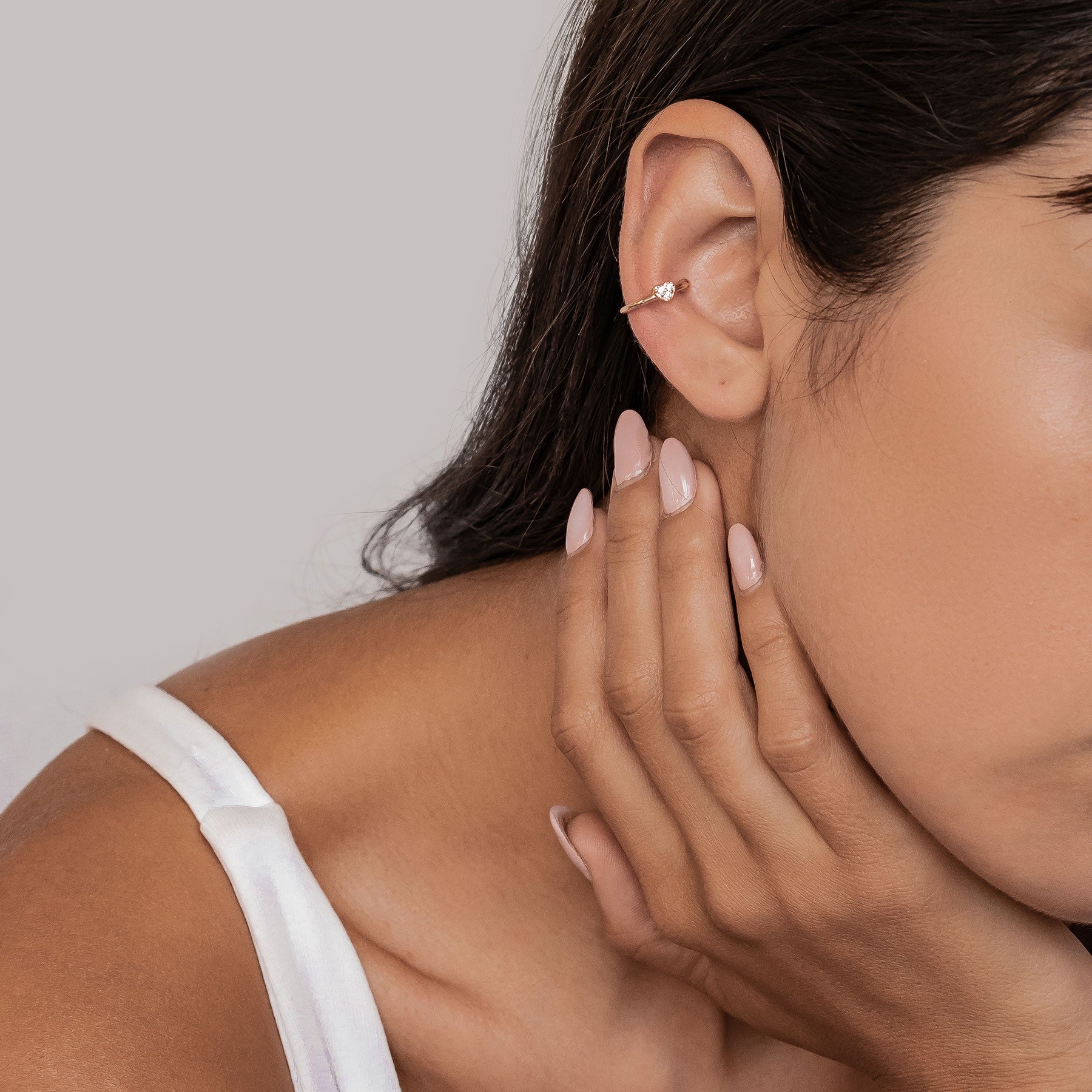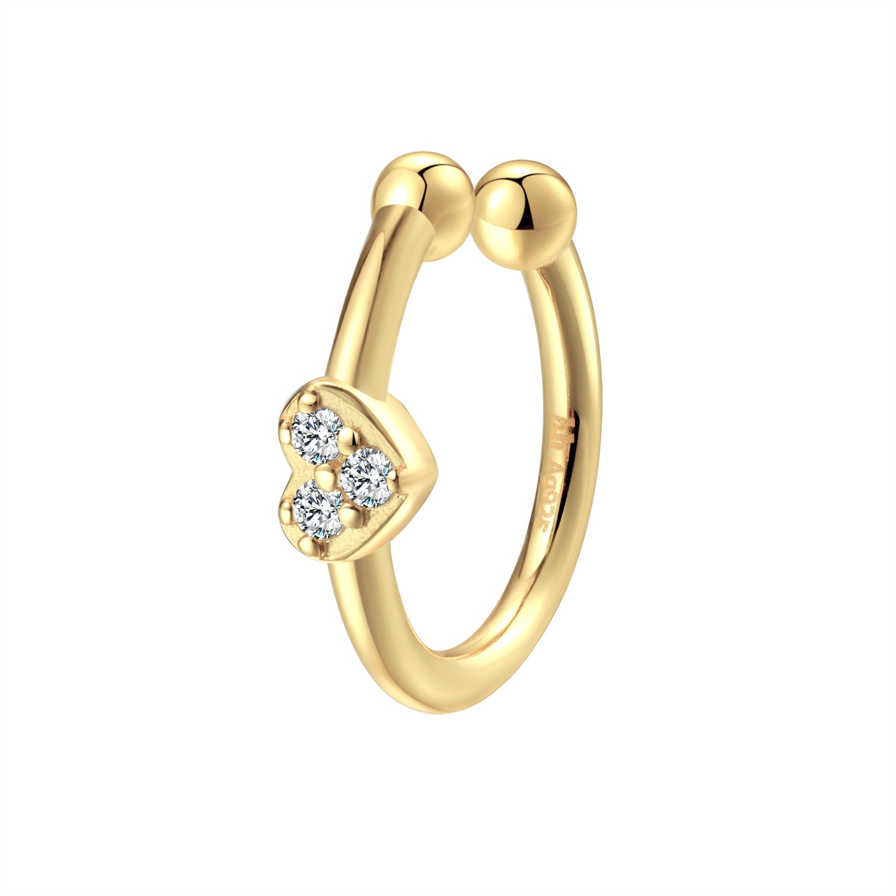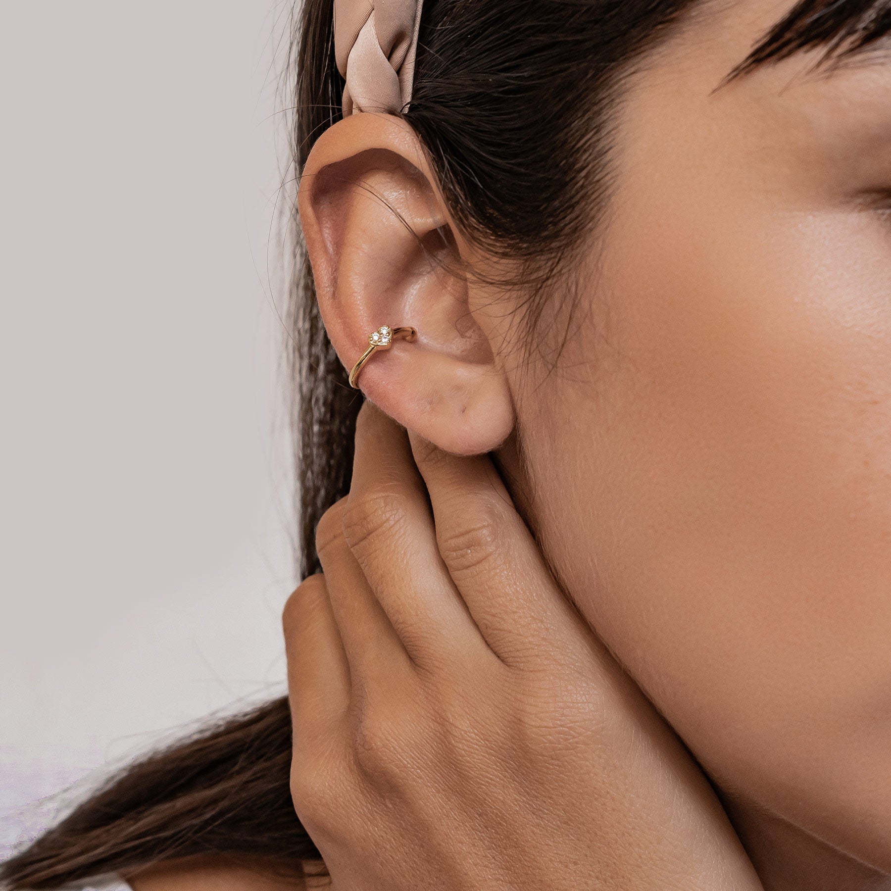 Bring a touch of sweetness to your ear styling with our Heart Ear Cuff. Expertly crafted from 925 sterling silver and available in gold, rose gold, or classic silver, this dainty cuff features a petite heart adorned with three sparkling cubic zirconia stones. Designed for comfort and ease, it slips on securely without the need for a piercing. Perfect for adding a romantic accent to your everyday look or layering with hoops and studs for a playful, curated ear stack.