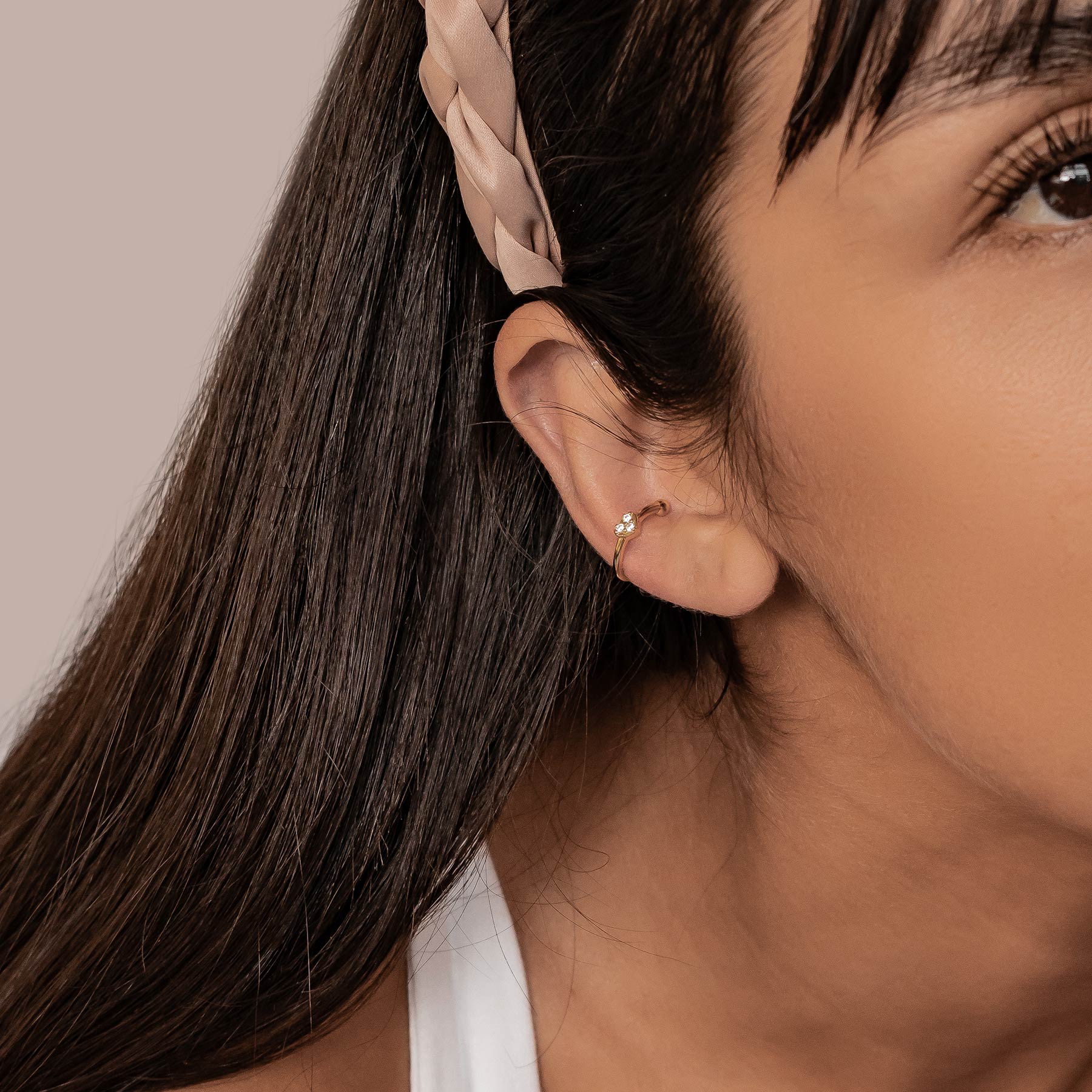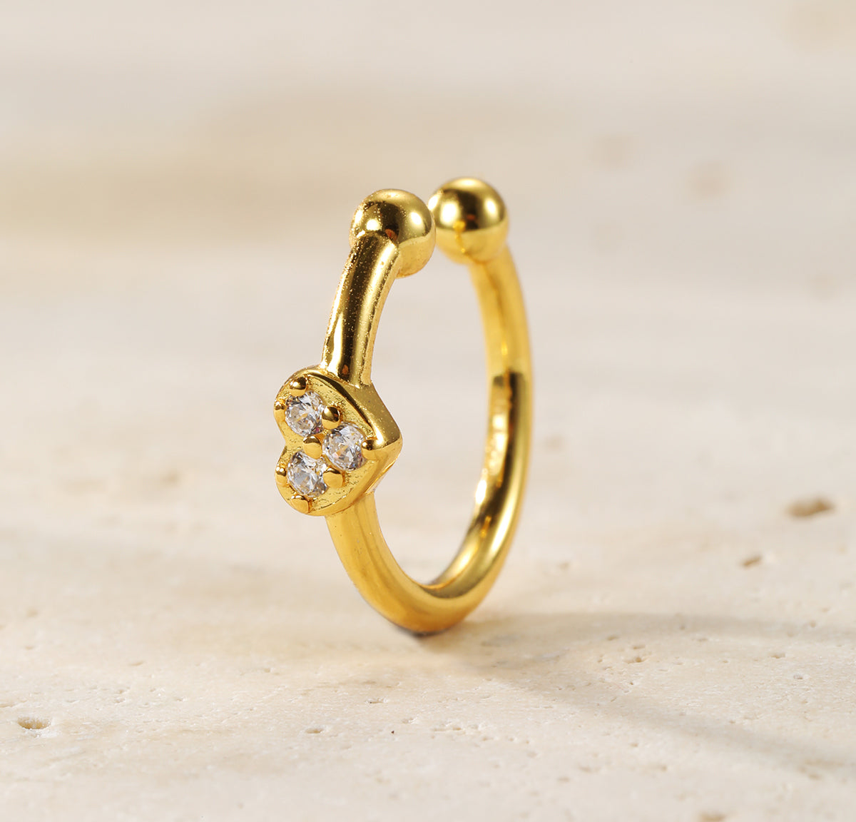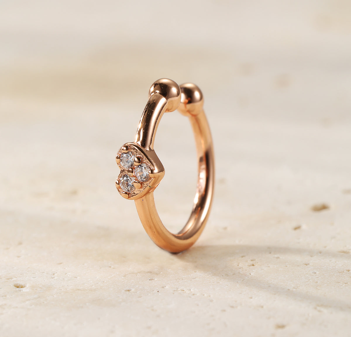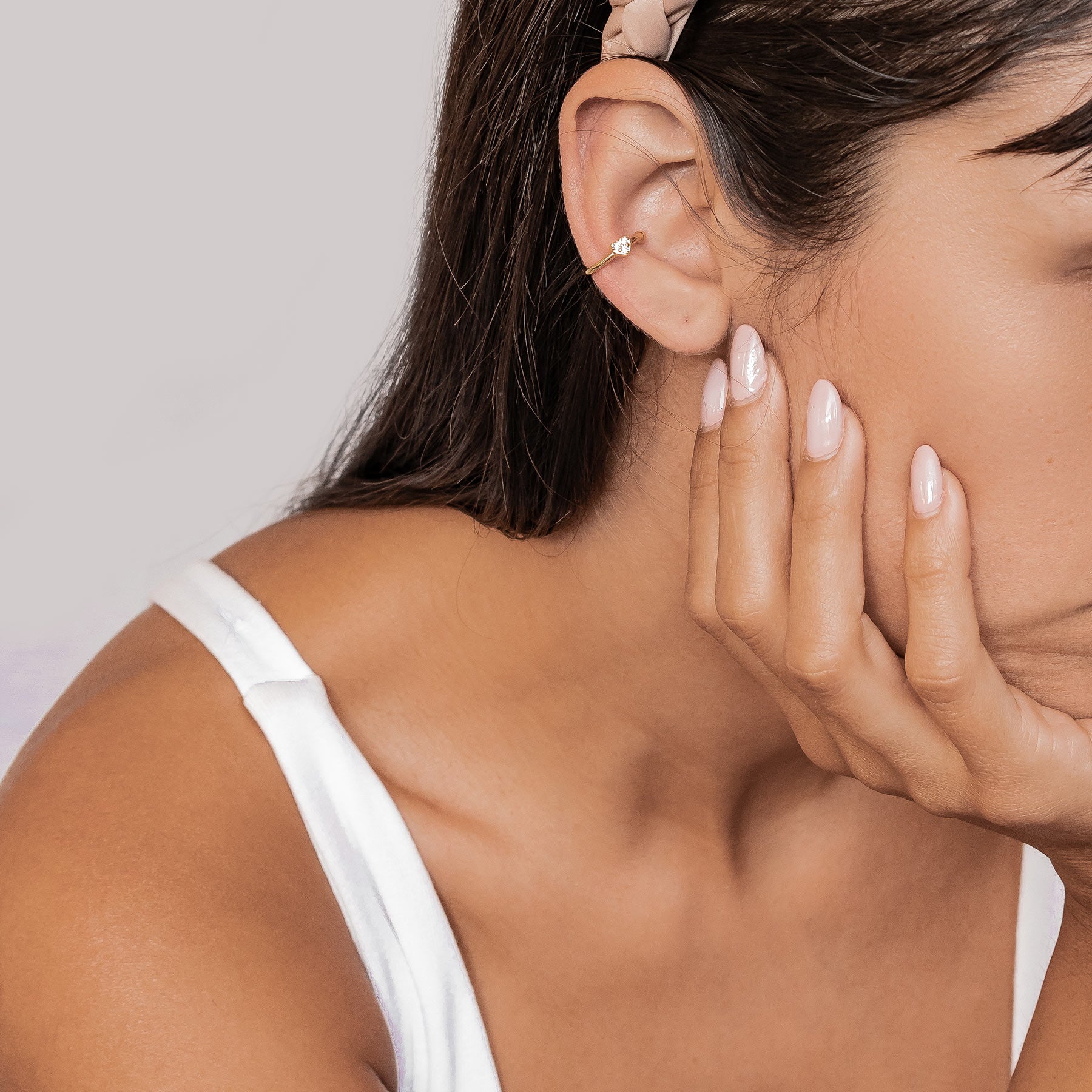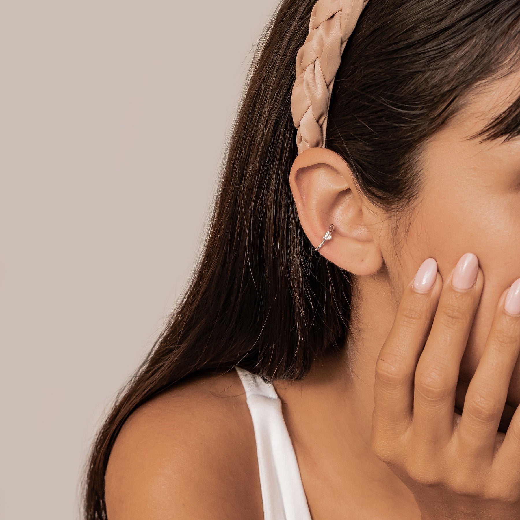 Bring a touch of sweetness to your ear styling with our Heart Ear Cuff. Expertly crafted from 925 sterling silver and available in gold, rose gold, or classic silver, this dainty cuff features a petite heart adorned with three sparkling cubic zirconia stones. Designed for comfort and ease, it slips on securely without the need for a piercing. Perfect for adding a romantic accent to your everyday look or layering with hoops and studs for a playful, curated ear stack.