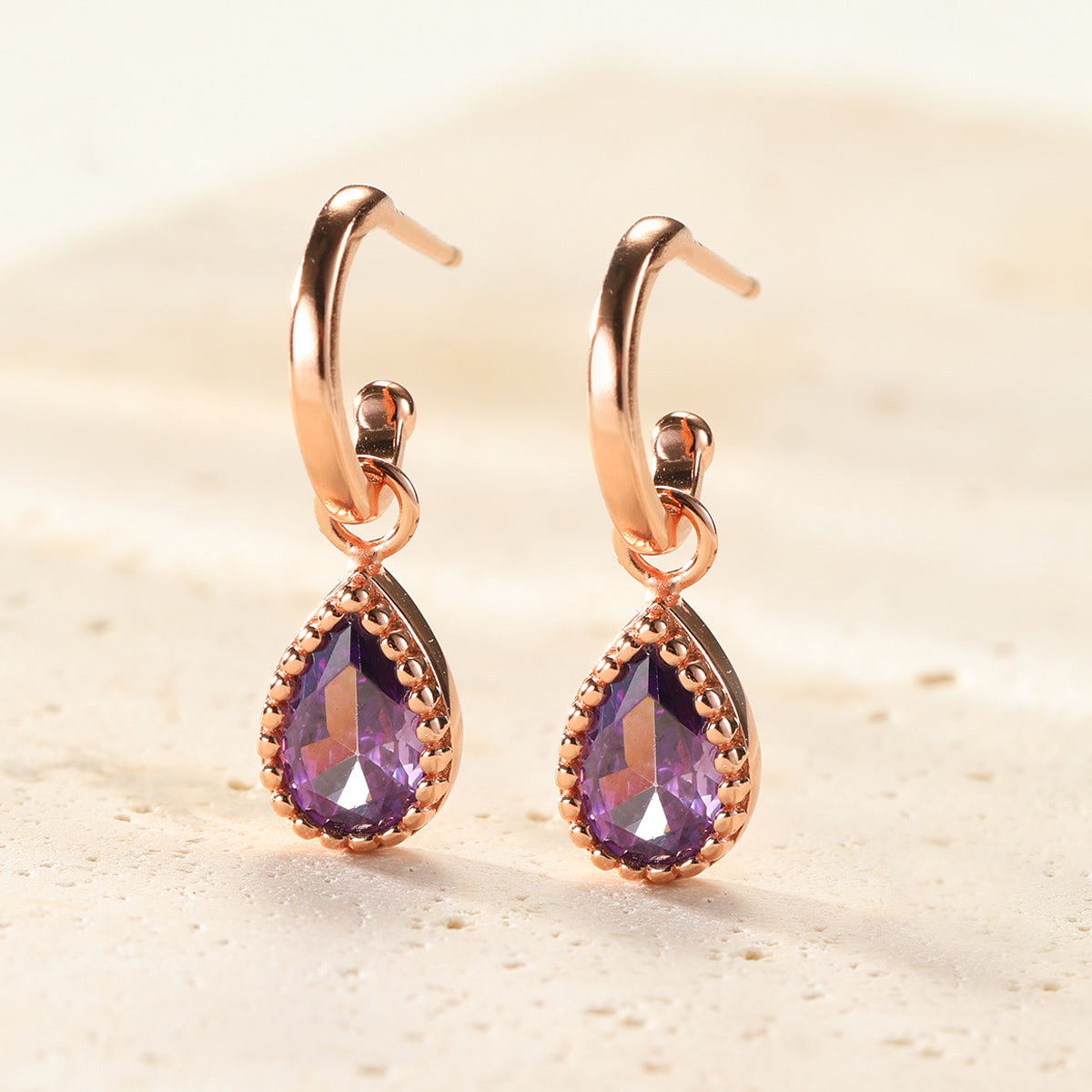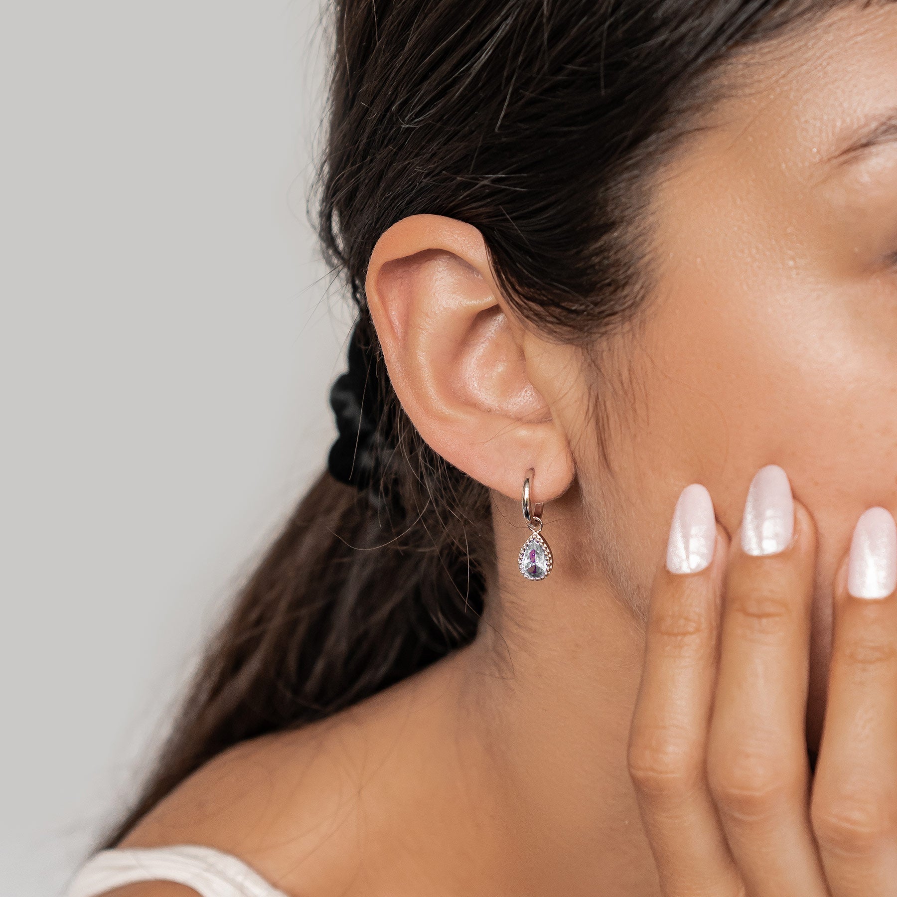 June Alexandrite Birthstone Hoop Earrings Sterling Silver