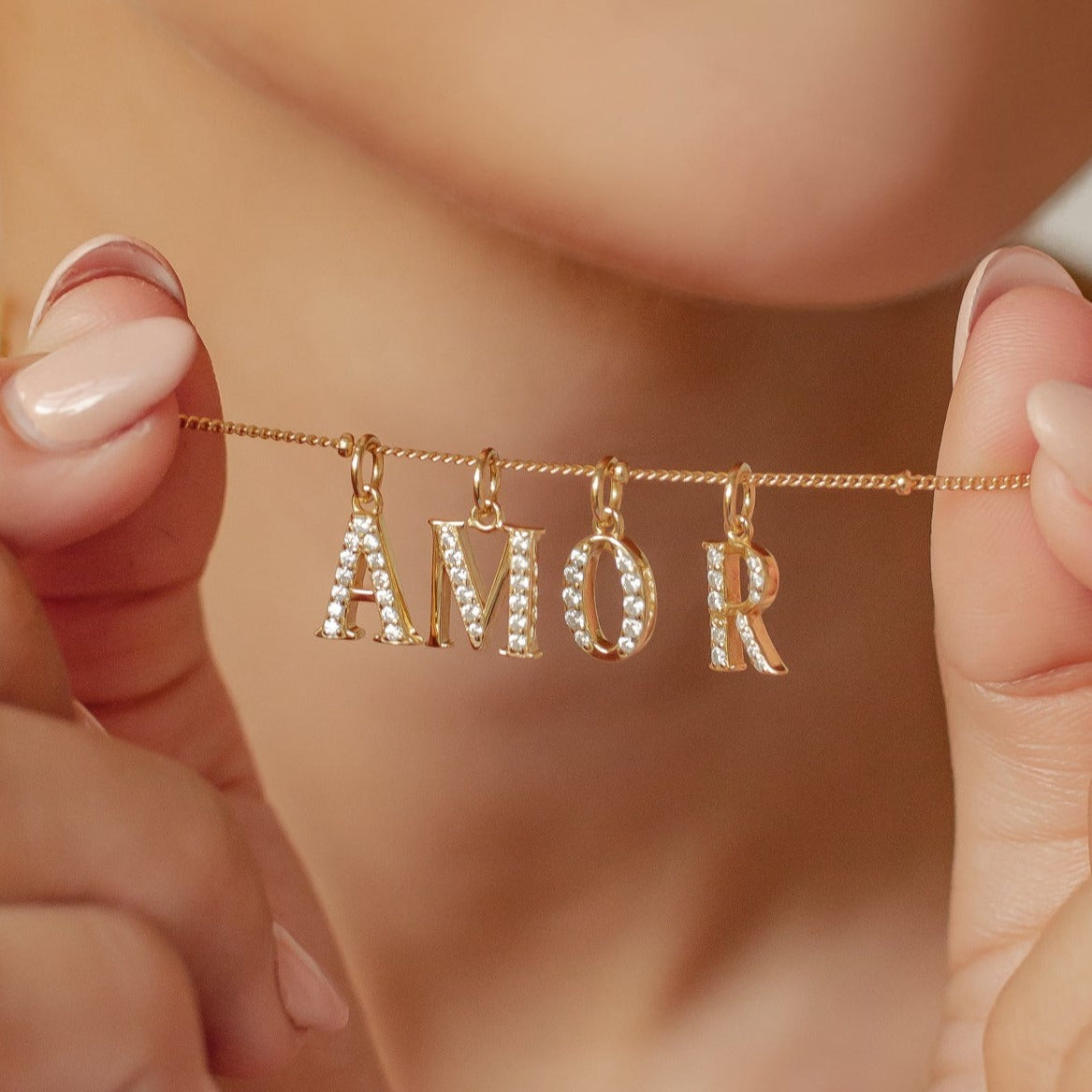 This necklace features a classic, curb style chain with tiny metallic beads dotted along its length, a spring clasp and extension chain at the center back, and a removable capital letter pendant encrusted with semi-precious zirconia stones, threaded on by a large jump ring. Adjustable and completely customizable (you can mix and match with your favorite pendants, or wear with other letter pendants at the same time), this is a versatile, modern necklace that will add a touch of polish to any outfit.