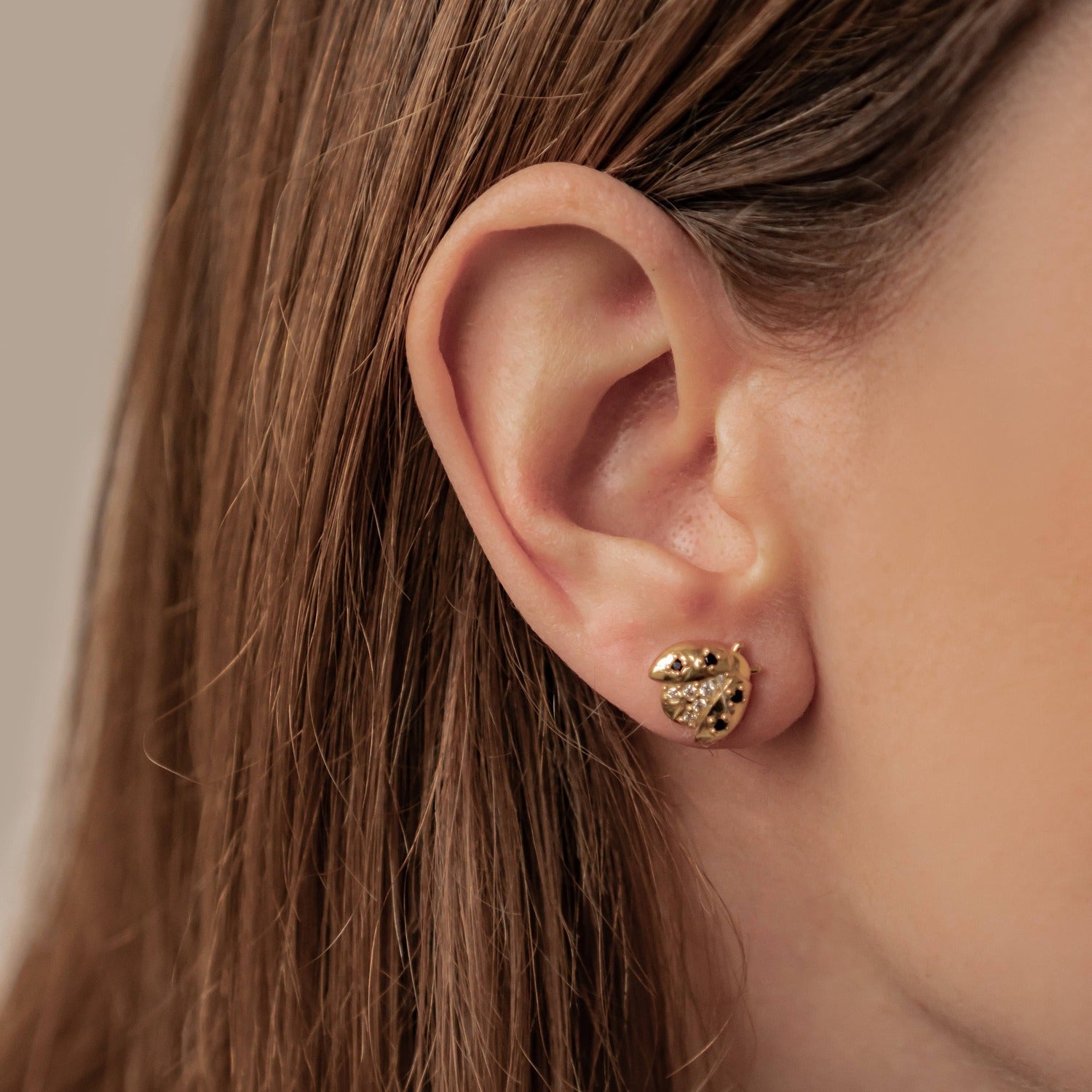 Add a touch of luck to your style with our Lucky Ladybug Stud Earrings. These sterling silver studs feature a charming ladybug design and come in your choice of gold, rose gold, or silver. Embrace the meaning of good luck with these adorable earrings.