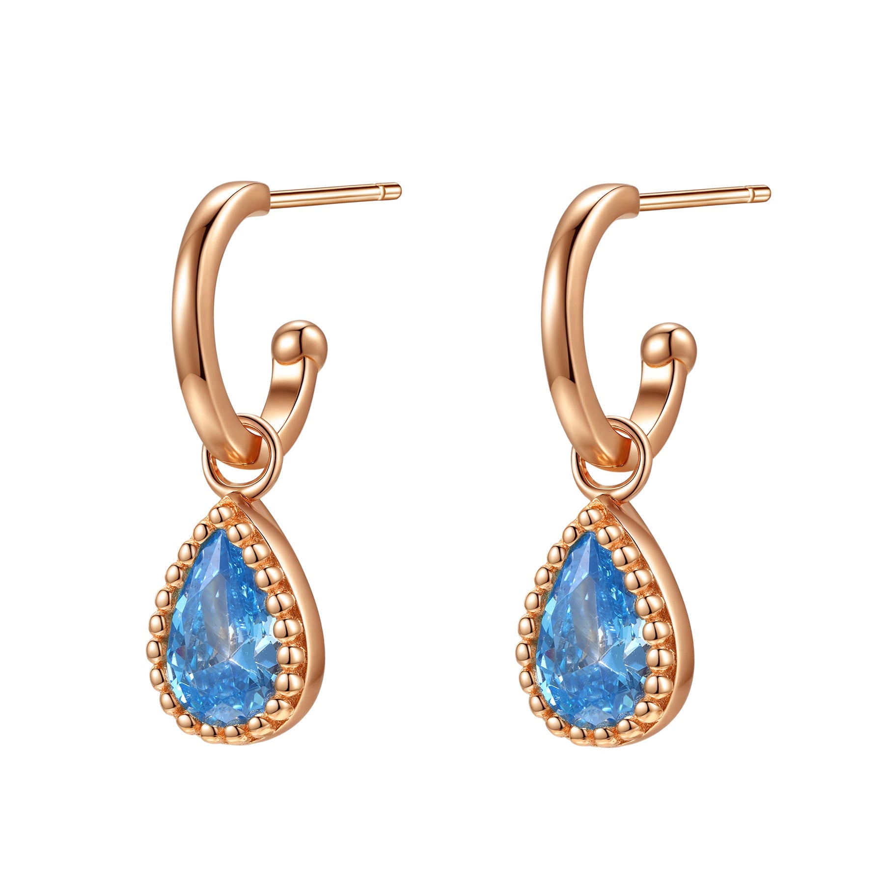 March Aquamarine Birthstone Hoop Earrings Sterling Silver
