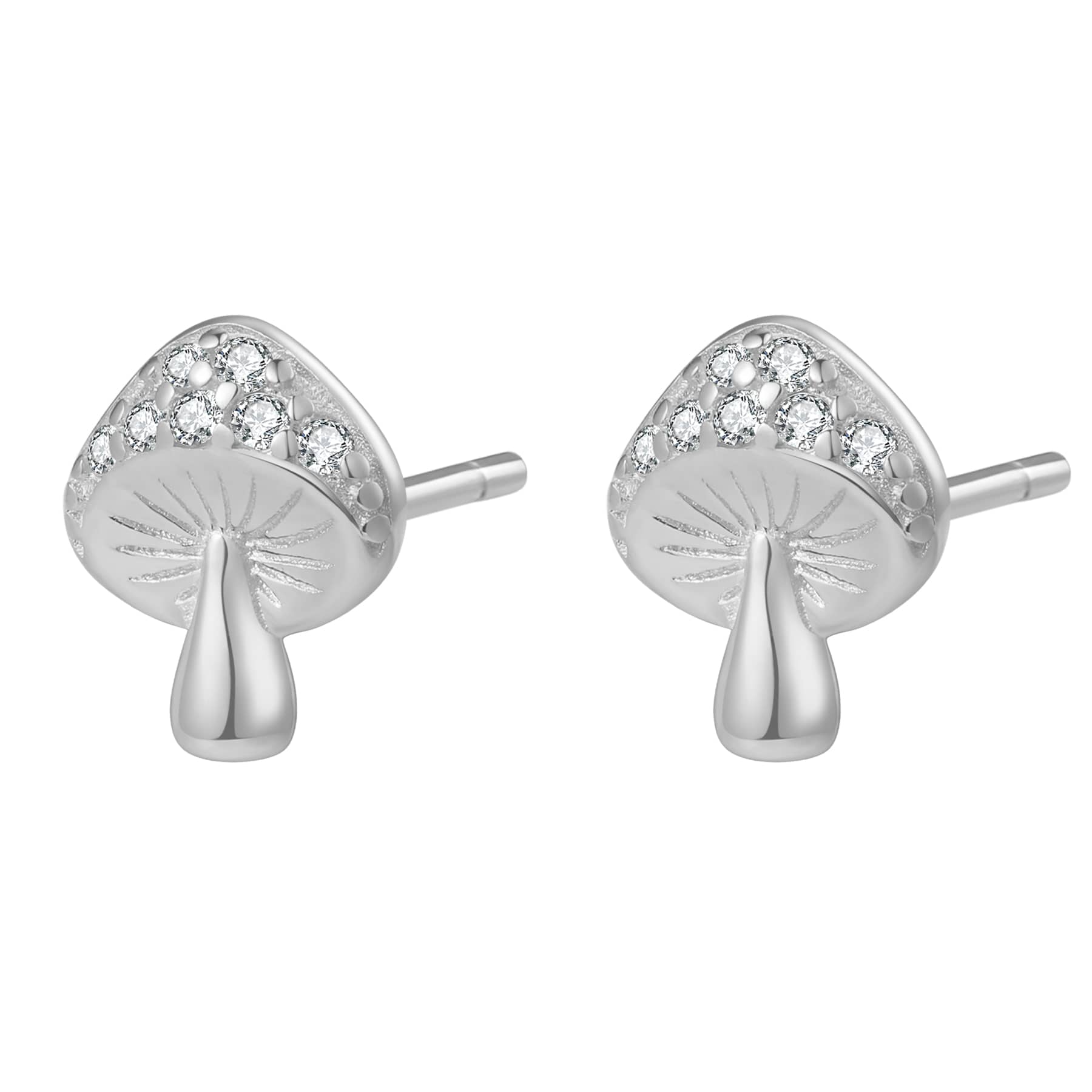 This sterling silver stud earring is shaped like a mushroom, with seven small round zirconia stones embedded in its cap, and delicate lines engraved on its underside. Known as a symbol of good luck and prosperity, this cute mushroom piece is the ideal addition to your jewelry collection. Choose from three metals: 925 sterling silver, 18 karat gold-plated sterling silver, and rose gold-plated sterling silver.