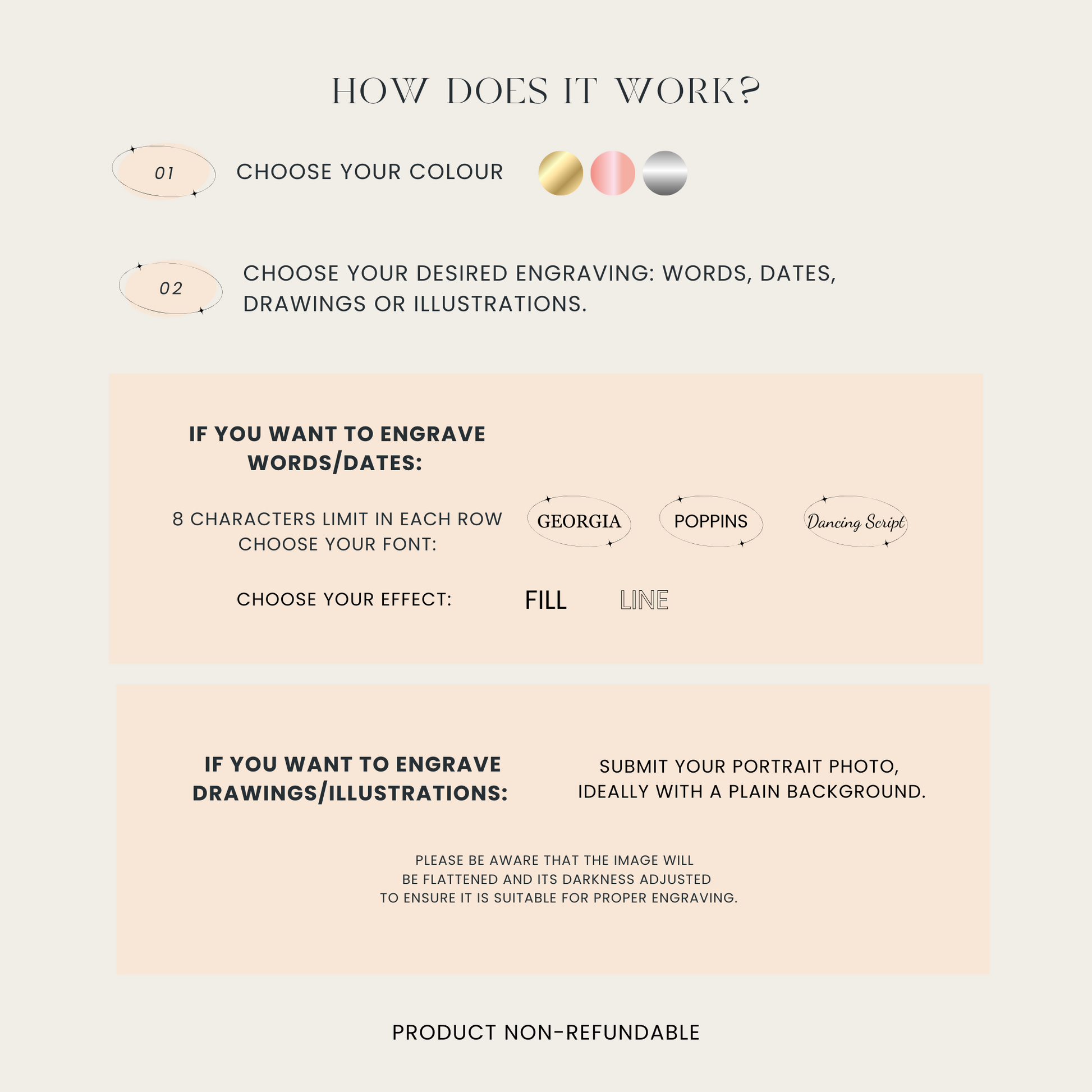 Make it personal with this elegant oval pendant necklace. Made of waterproof stainless steel and available in three finishes, it’s perfect for engraving a name, a significant word, or a custom drawing. A great gift for birthdays, new moms, or self-love moments. Laser-engraved with precision for a polished and lasting result.
