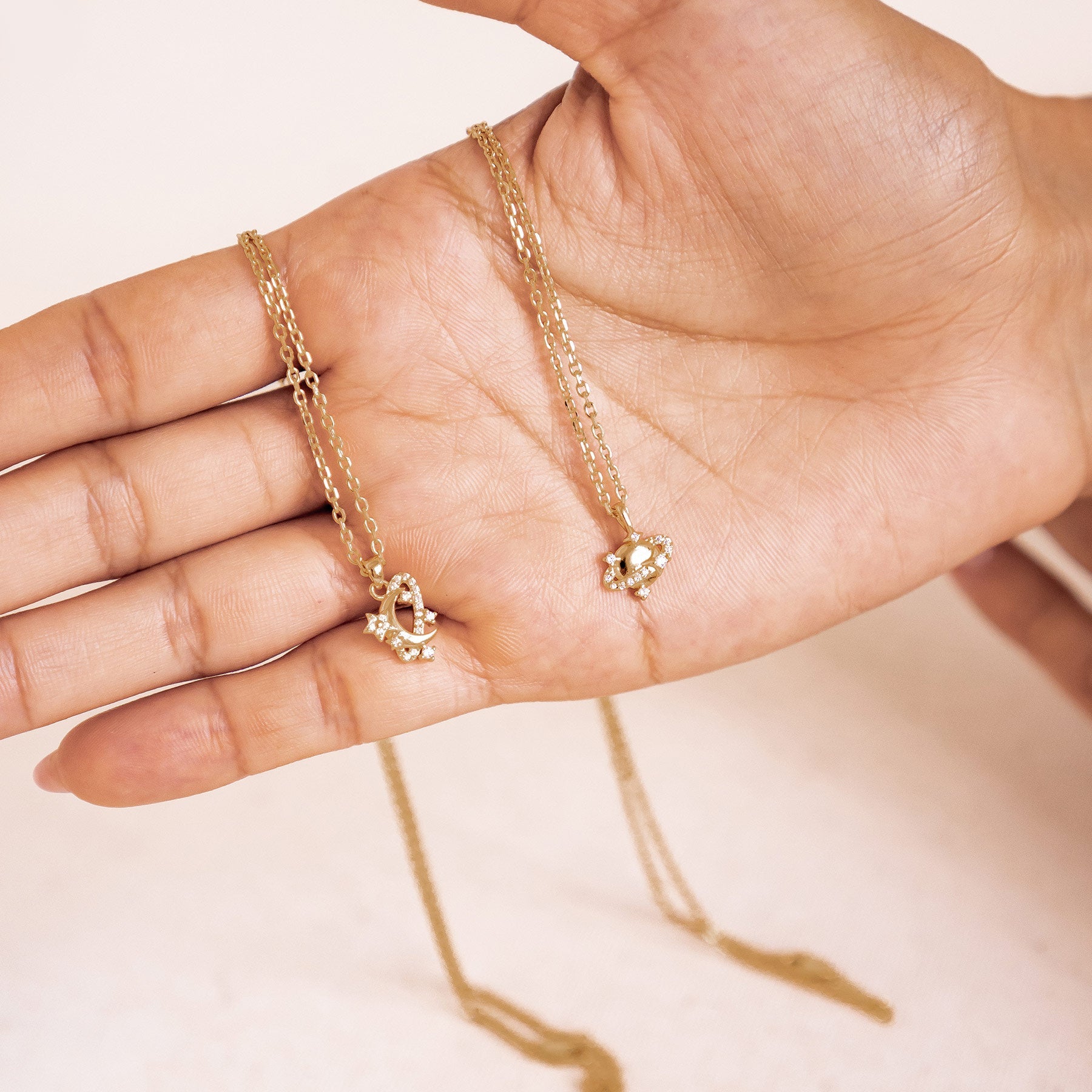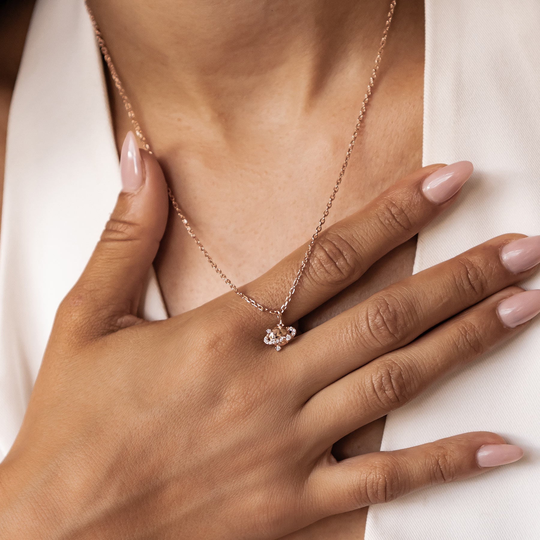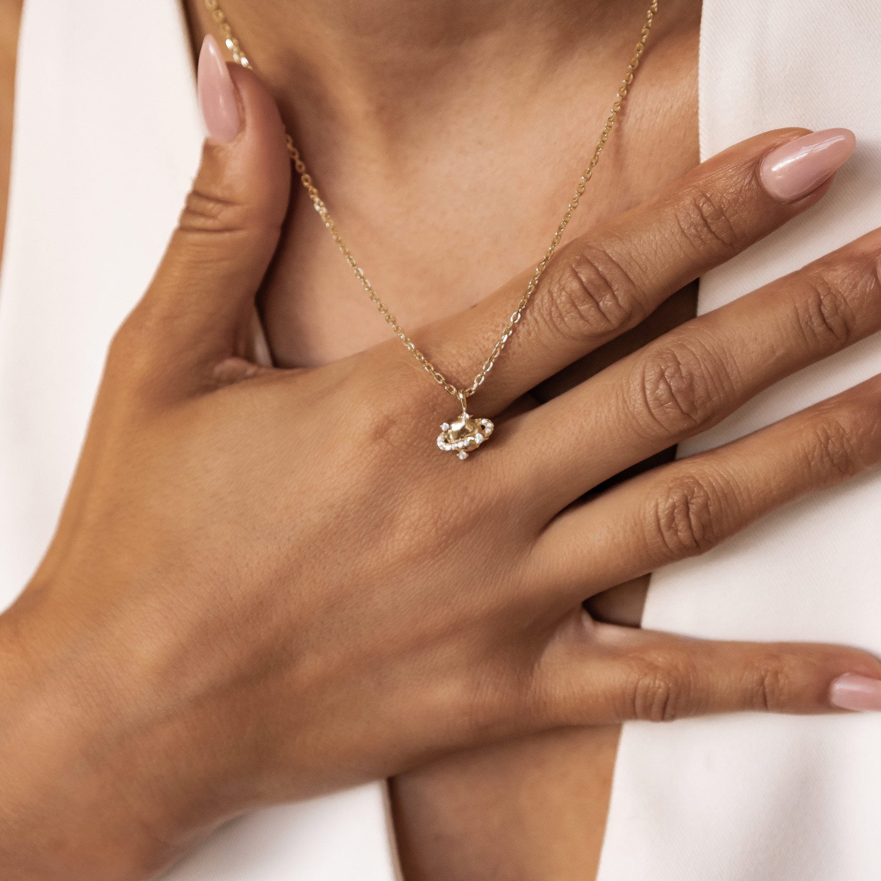 Channel the magic of the universe with this planet pendant necklace, crafted from sterling silver and available in gold, silver, or rose gold finishes. The planet charm is framed by a shimmering orbit of zirconia stones and accented with tiny stars, representing curiosity, growth, and balance. A radiant reminder that you’re always in motion—just like the cosmos.