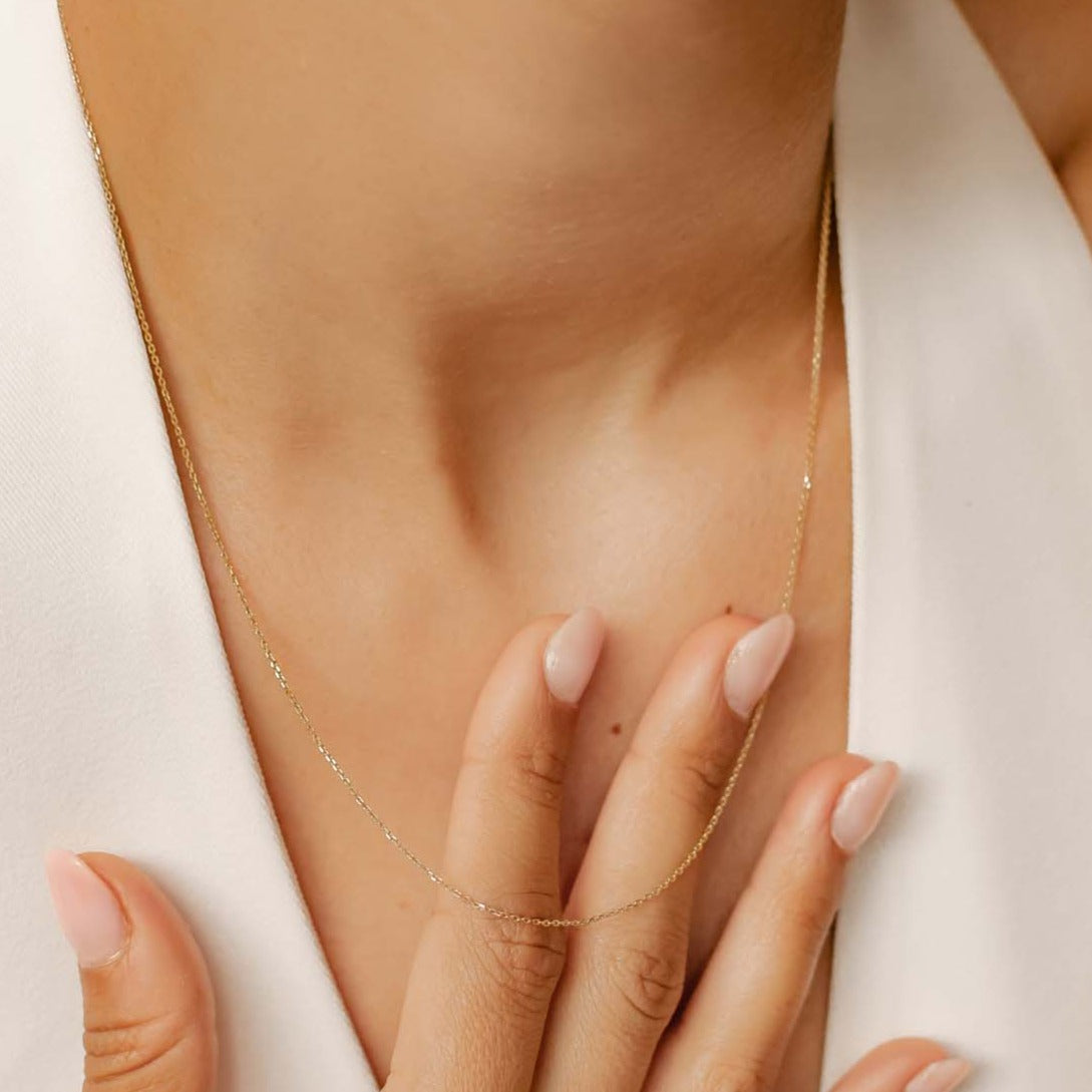 Designed to be as pure and timeless as possible, our pristine necklace features a classic, cable-style adjustable chain made from 9 karat 375 gold, and an easy-to-use round spring clasp. Worn alone or paired with your favorite pendant, we want this necklace to help you celebrate the beauty of just being. The silver version is plated with rhodium for extra strength and luster. This superior protective coat prevents the jewelry from scratches, ensures no tarnishing, and requires minimal upkeep. Enjoy a timeless, reflective white elegance that simplifies luxury, making each piece a resilient and sophisticated choice for any collection. Also check out Bloom Pendant Necklace 9K Gold.