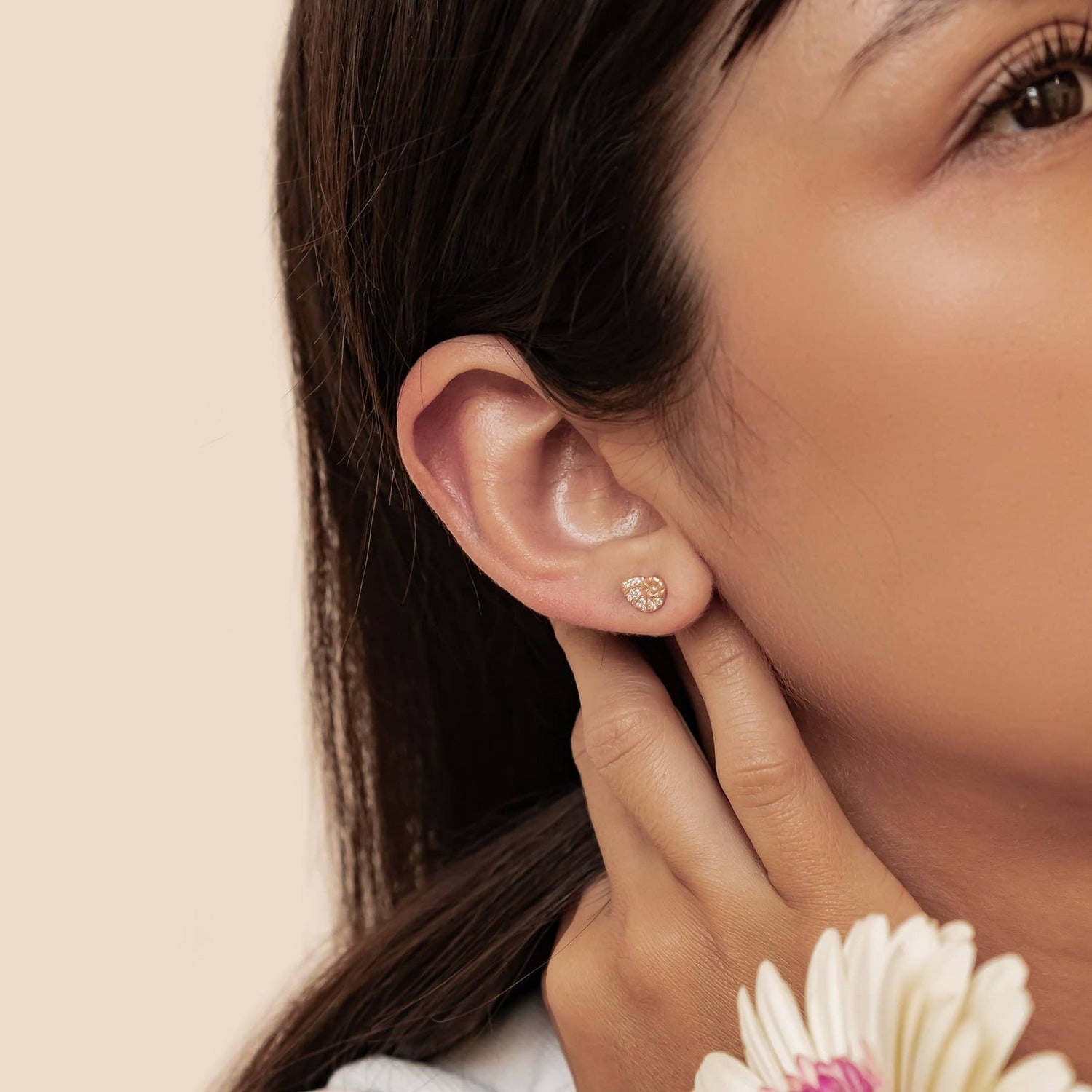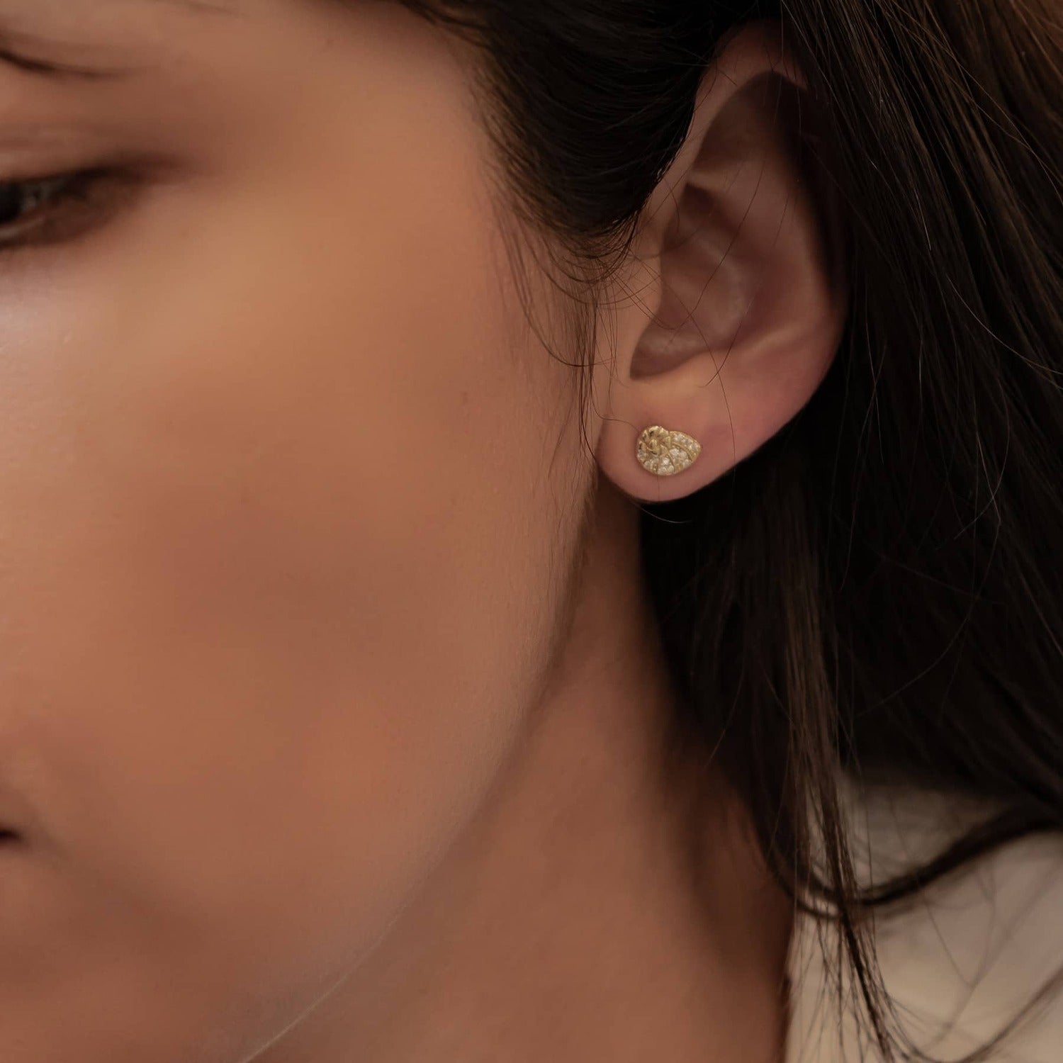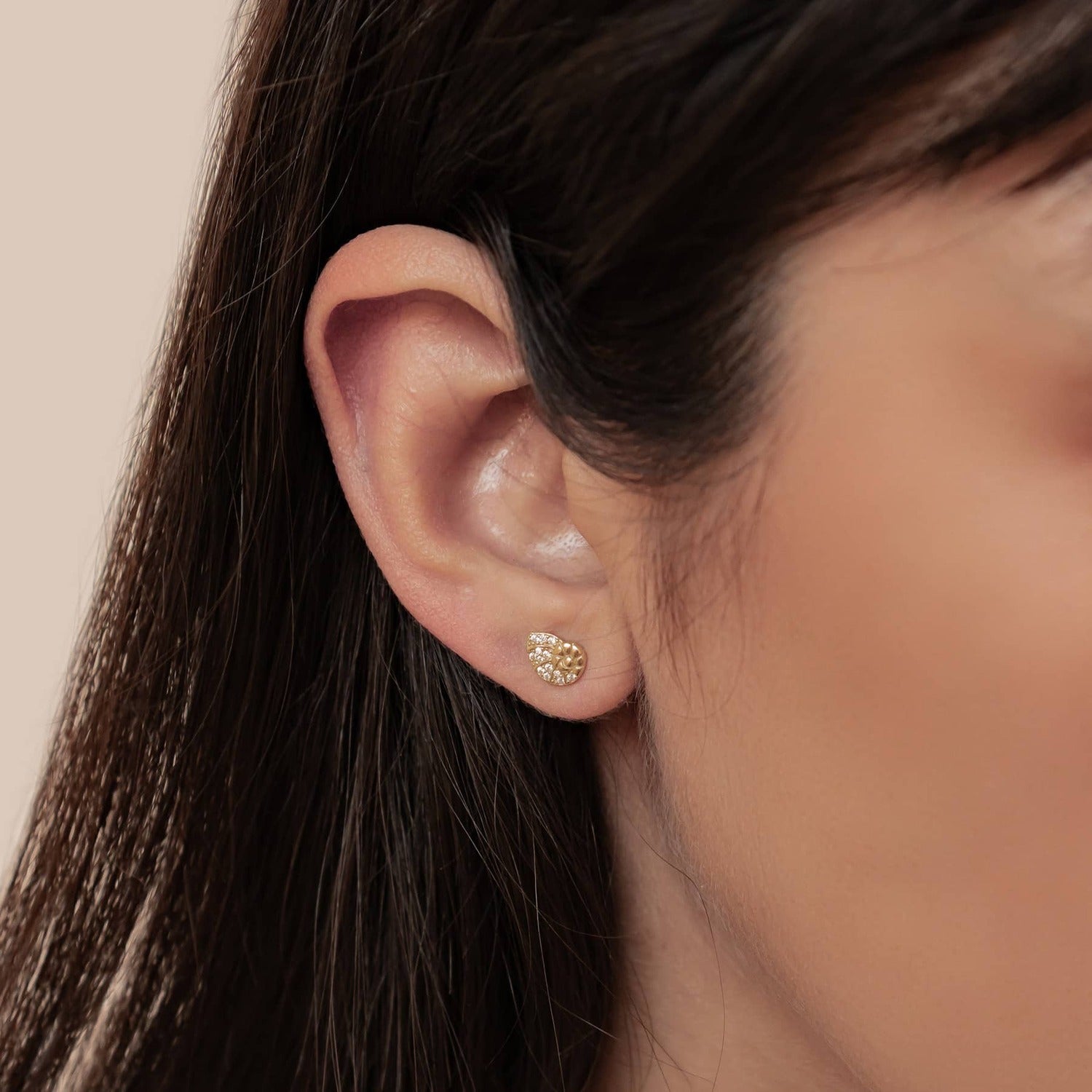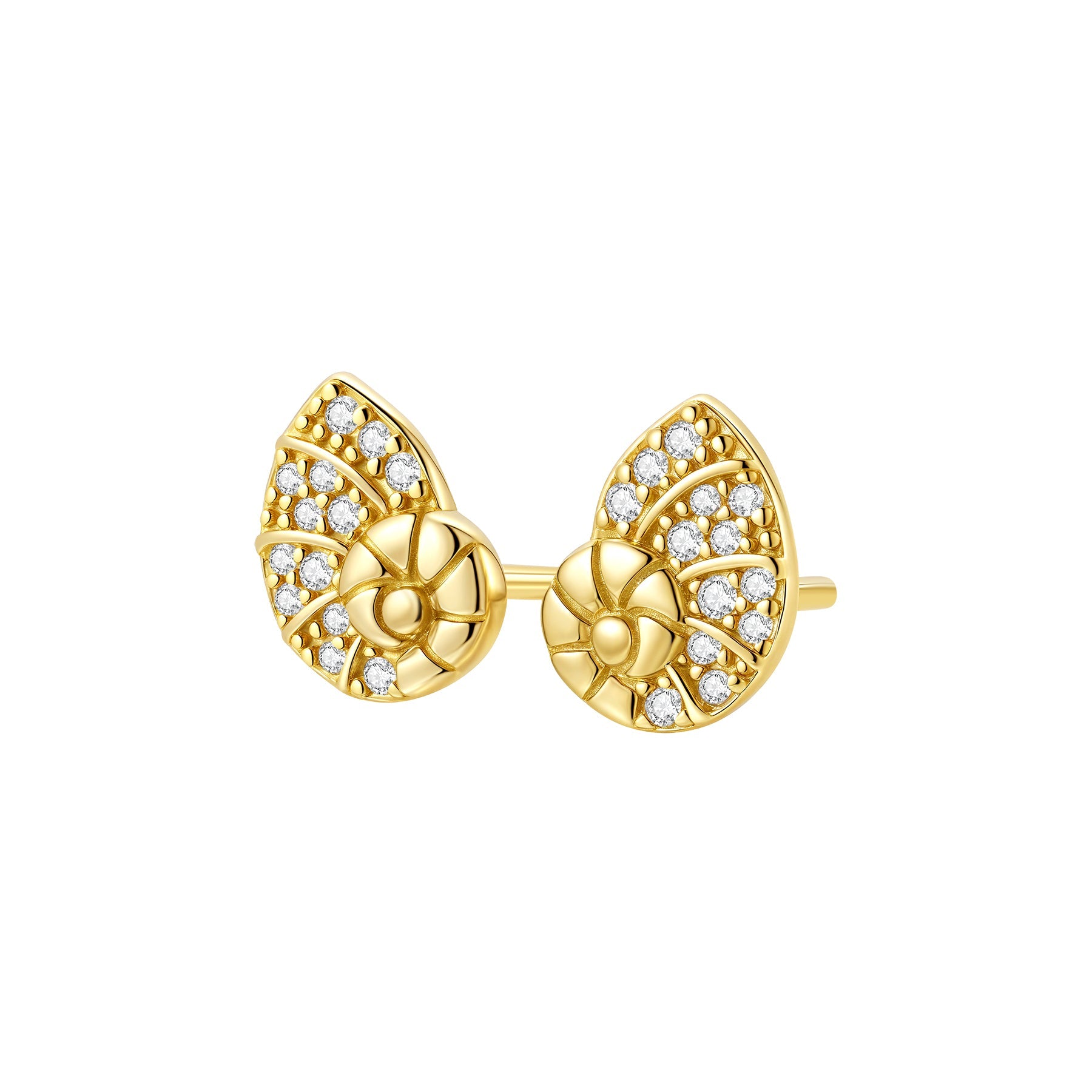 These elegant shell-inspired studs combine delicate detailing with eye-catching sparkle. The swirling design gives them a soft, feminine feel, while the stones create a beautiful shimmering effect. Made of sterling silver and available in gold, rose gold, and silver, they make a lovely everyday piece for ocean lovers.