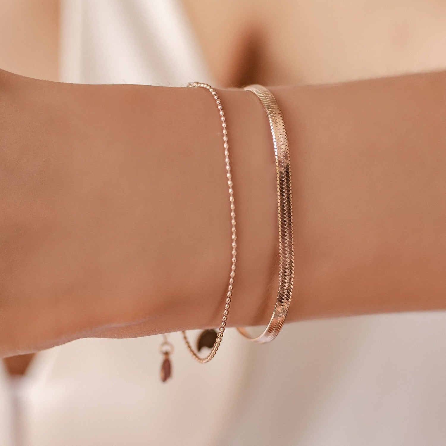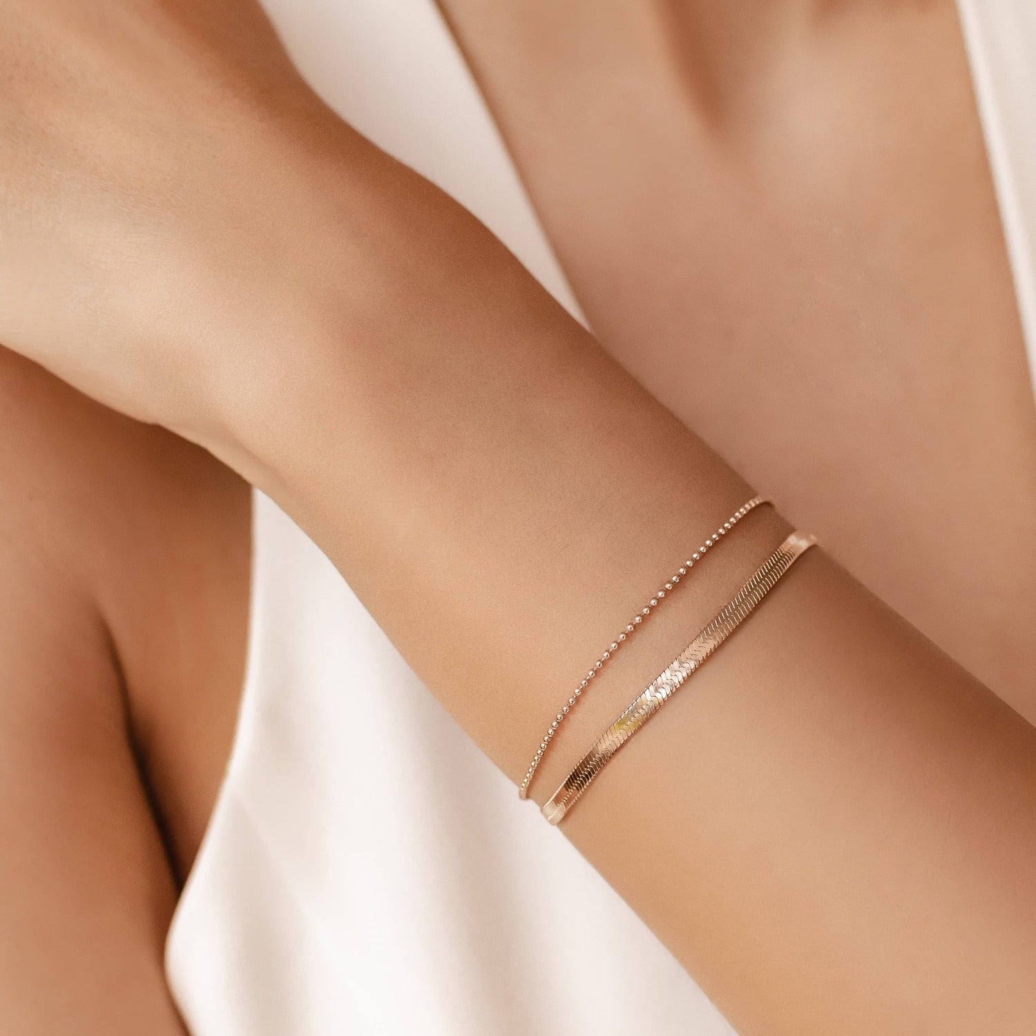 Effortlessly elevate your wrist game with our Snake and Bead Chain Bracelet Set. Crafted from premium stainless steel, this set includes two bracelets. Available in gold, rose gold, and silver. It includes: