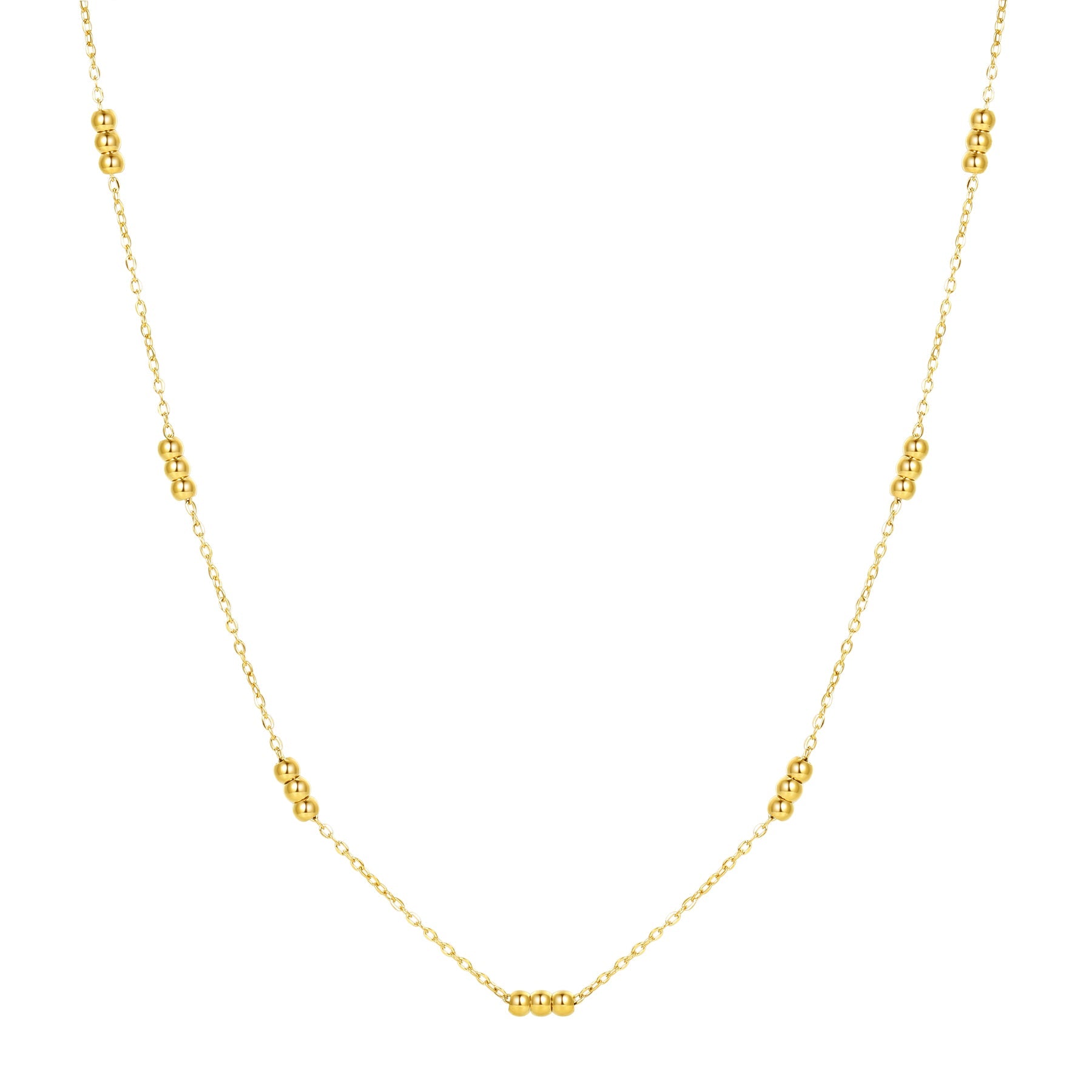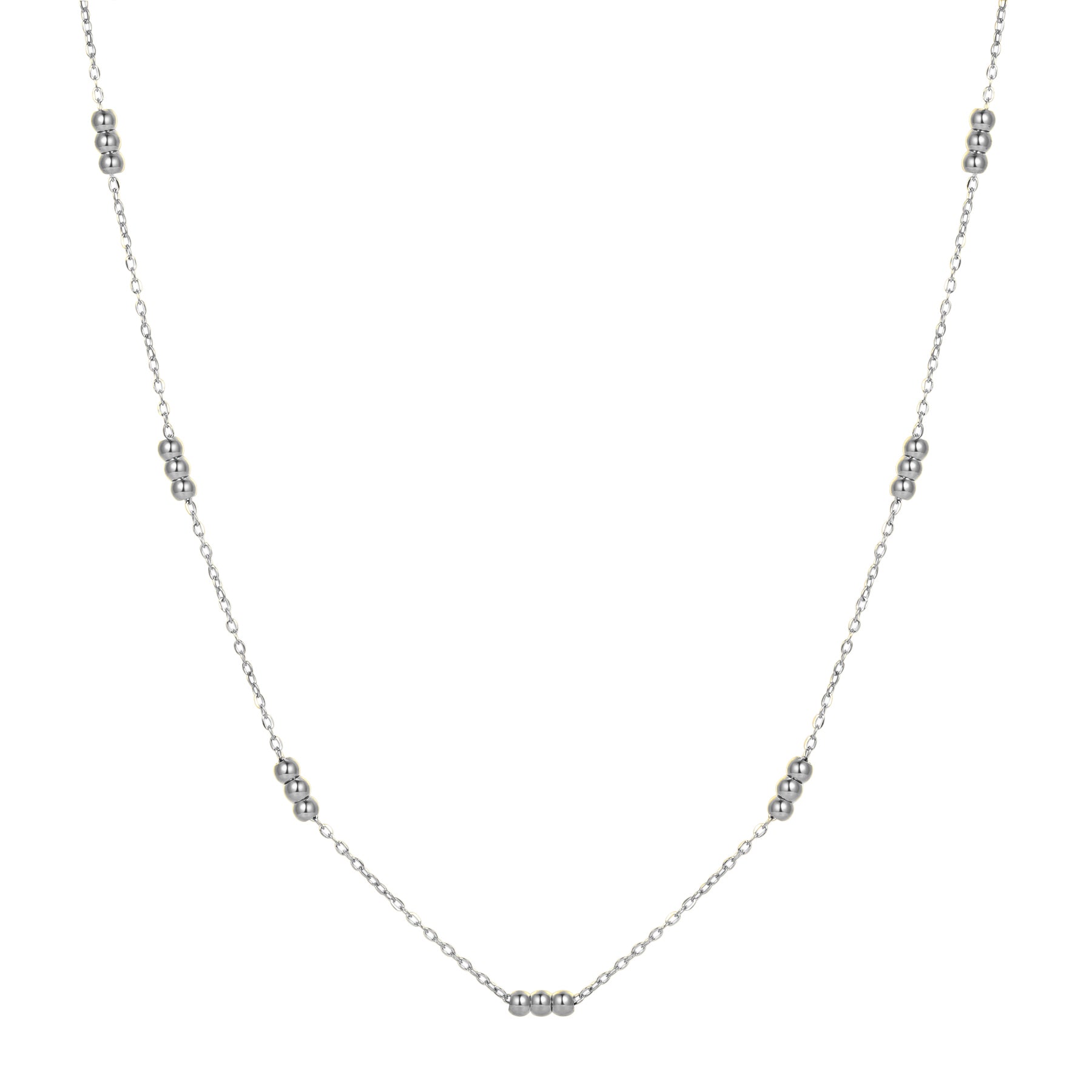 Expertly crafted from durable stainless steel, this Three Satellite Chain Necklace is waterproof and available in three stunning finishes: gold, rose gold, and silver. Adorned with three delicate metal beads along its length, this necklace adds a touch of elegance to any outfit. Perfect for everyday wear or special occasions.
