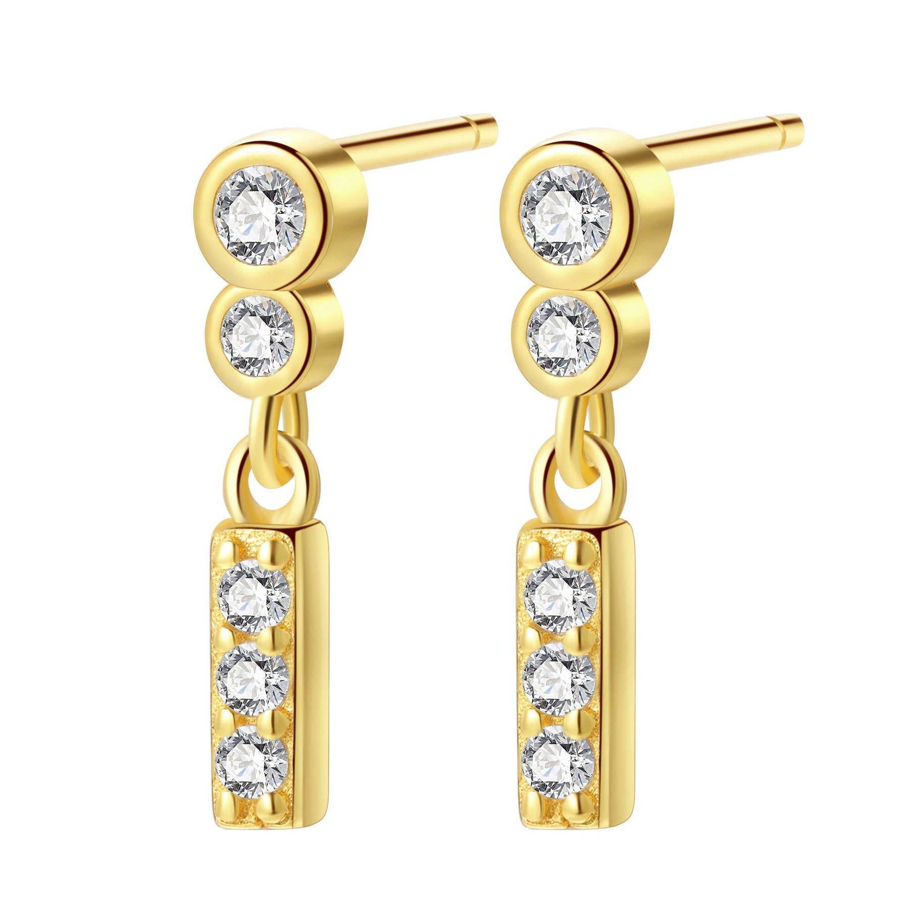 Elevate your everyday look with our Two Orbs Drop Stud Earrings. Made of sterling silver, each earring features two sparkling zirconia orbs resting on the earlobe. A gemstone bar subtly dangles beneath for a touch of luxury. Available in both gold and silver, these earrings are a must-have for any fashion-forward individual. Also, check out White Triad Stud Earrings Sterling Silver Gold.
