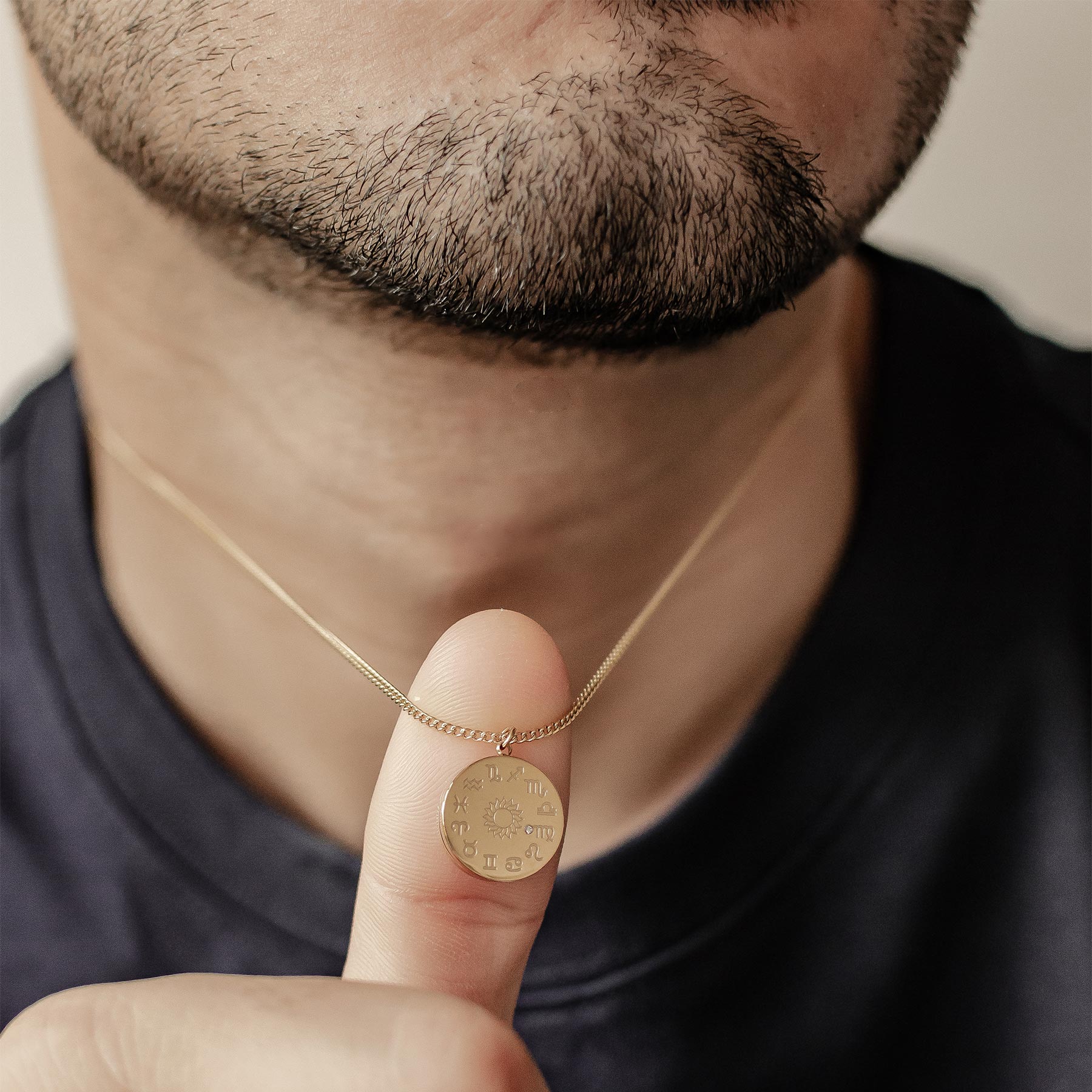 This is a detachable and reversible round pendant that features a tiny star, crescent moon, and a cluster of zirconia stones set into a shell base on one side. On the other side, it has the full zodiac wheel with a sun in the middle and a tiny zirconia pointing to the Virgo symbol. Analytical, intelligent and detail-oriented Virgo will enjoy the precise lines on this stunning piece.